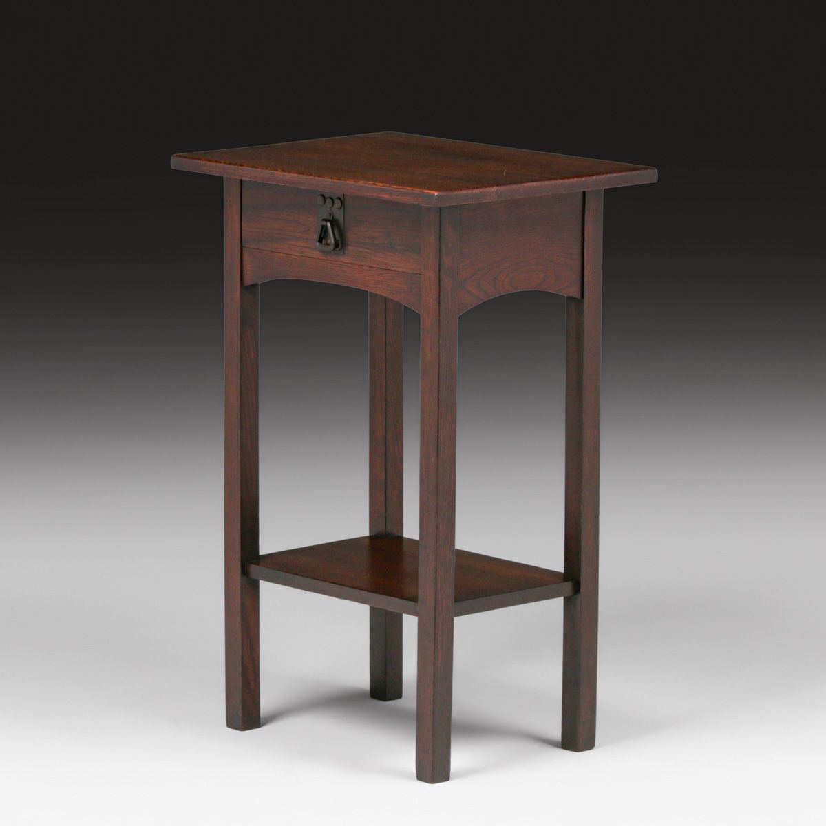 - Michigan Chair Co Pair One-Drawer Oak Side Tables c1910