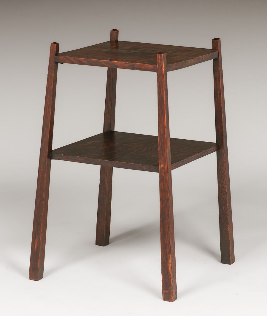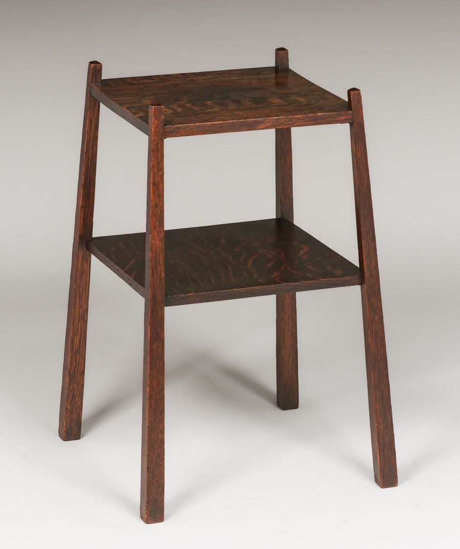 Michigan Chair Co Reverse-Table Square Side Table c1910. Unsigned. Excellent original finish. Very sturdy. 29"h (27"h to top surface) x 19" x19" (15" x 15" at top) SOLD
