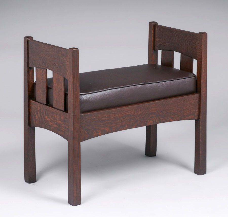 Michigan Chair Co Slatted Reverse-Tapered Window Seat c1910. Signed. Very nicely refinished. 31.75"w x 16 5/8"d x 27.25"h SOLD