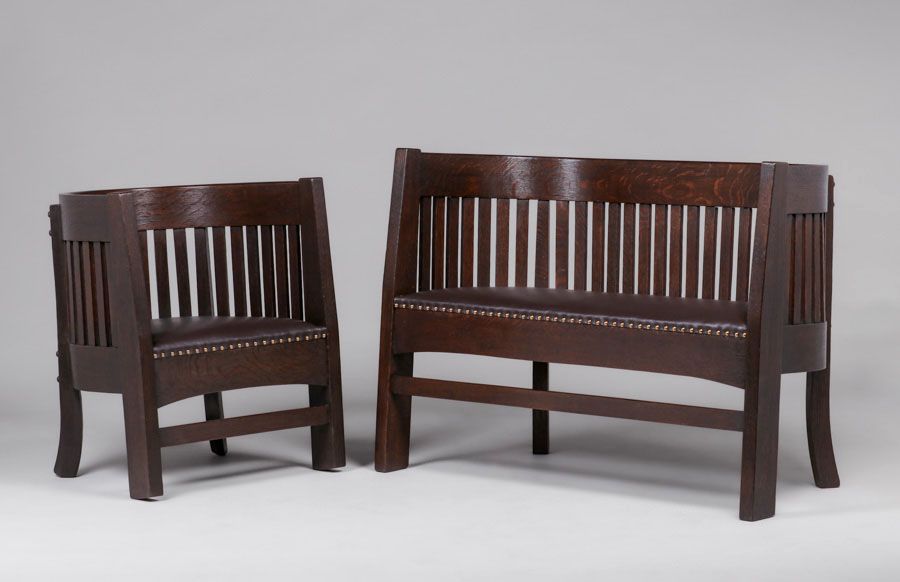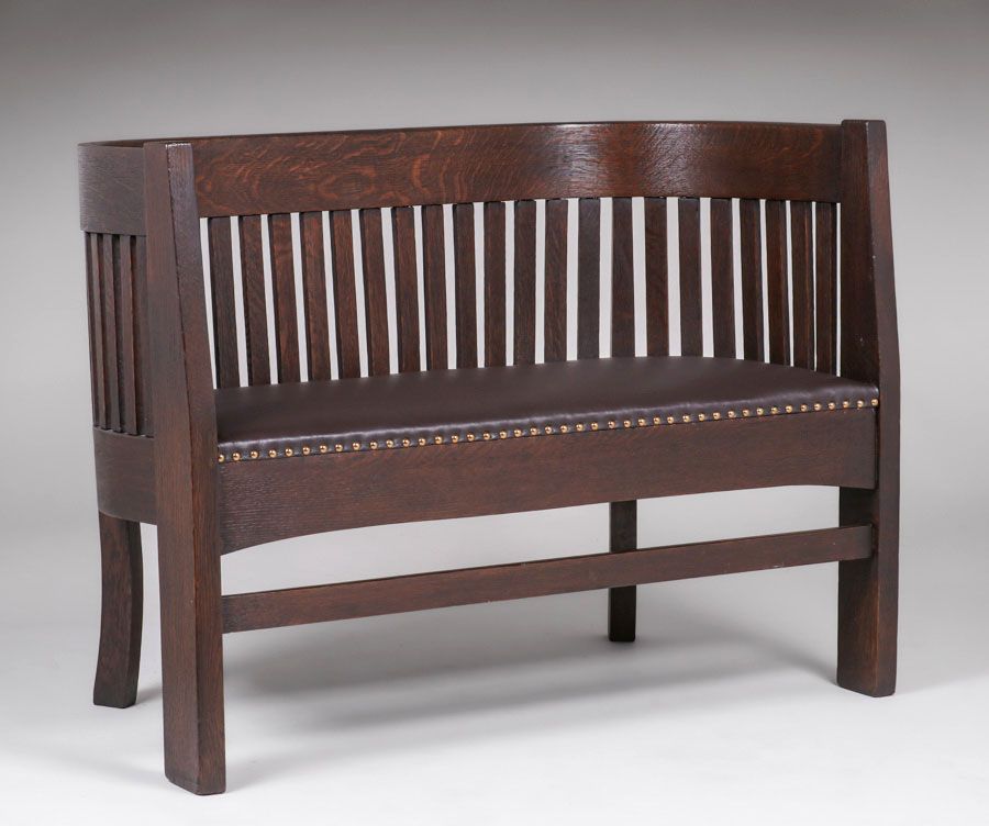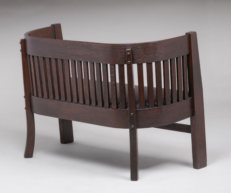 - Plail Brothers Furniture Co Prairie School Barrel-Back Settle c1905