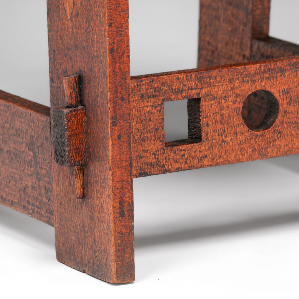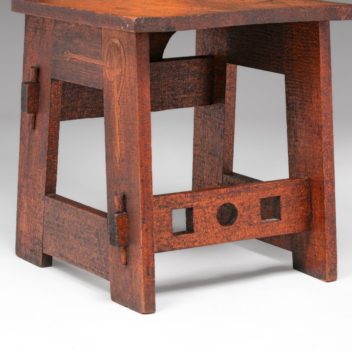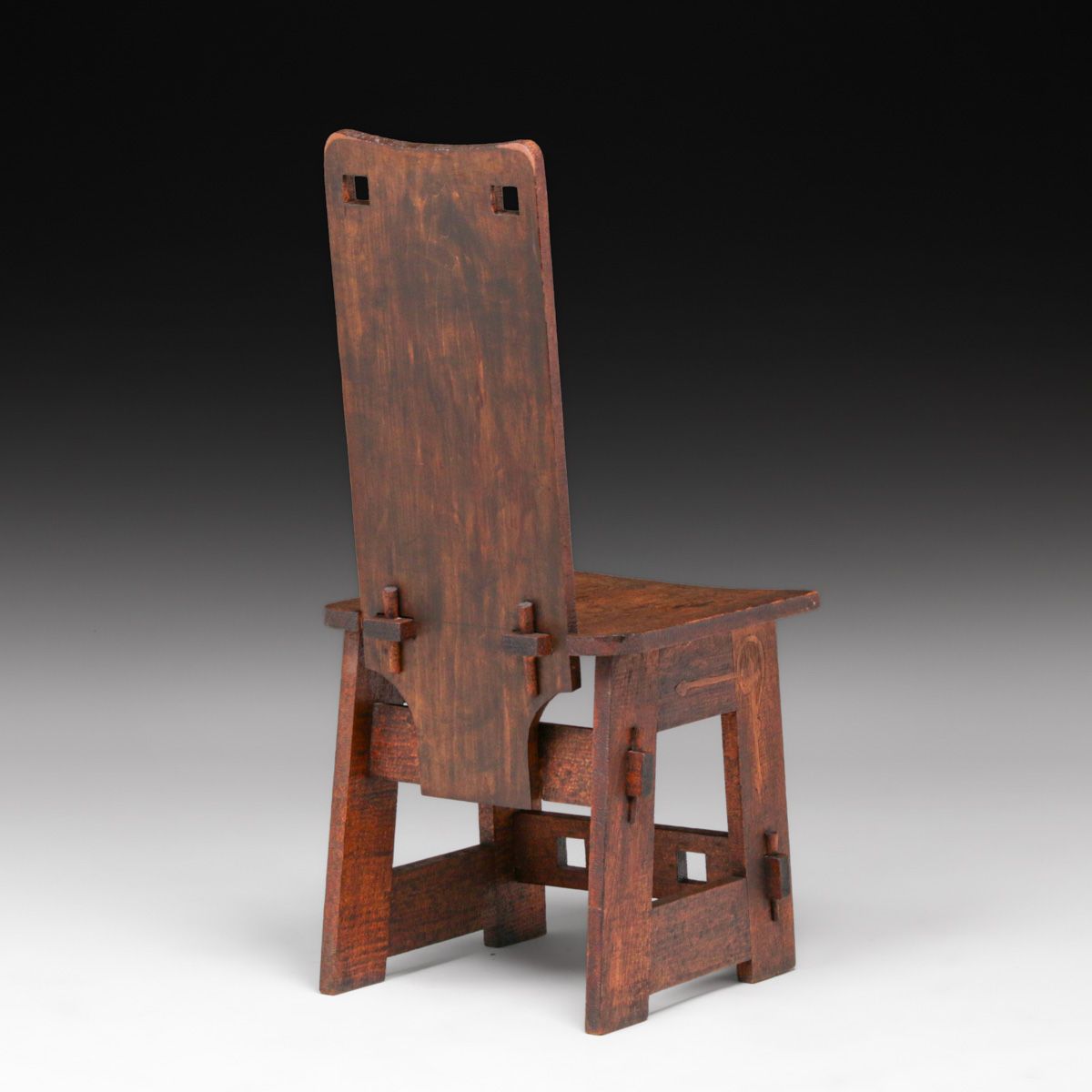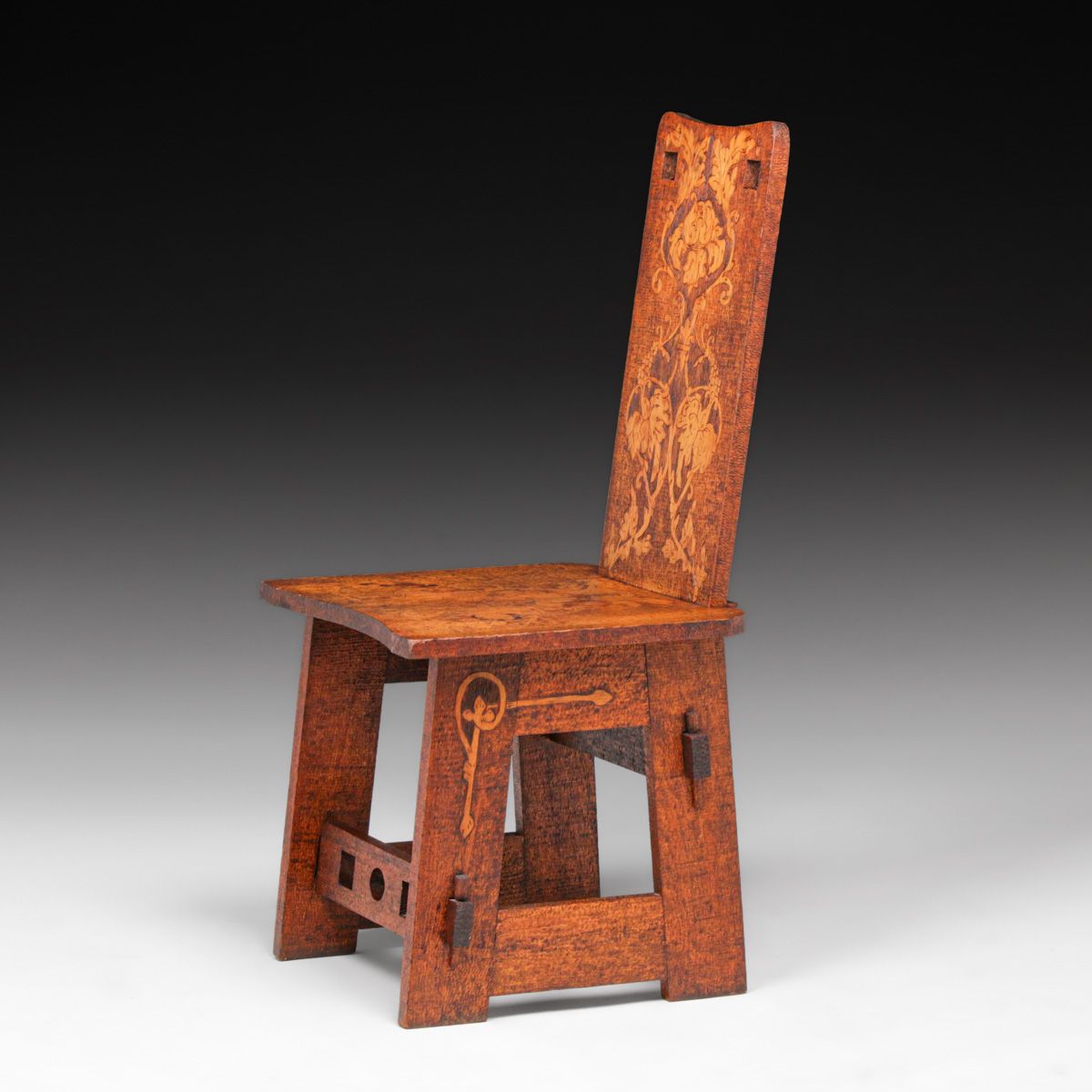 - Arts & Crafts Period Hand-Carved Pyrography Cutout Hall Chair c1905