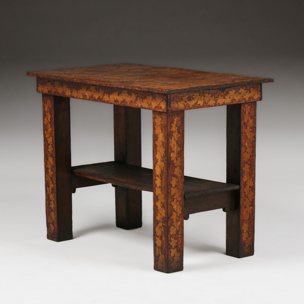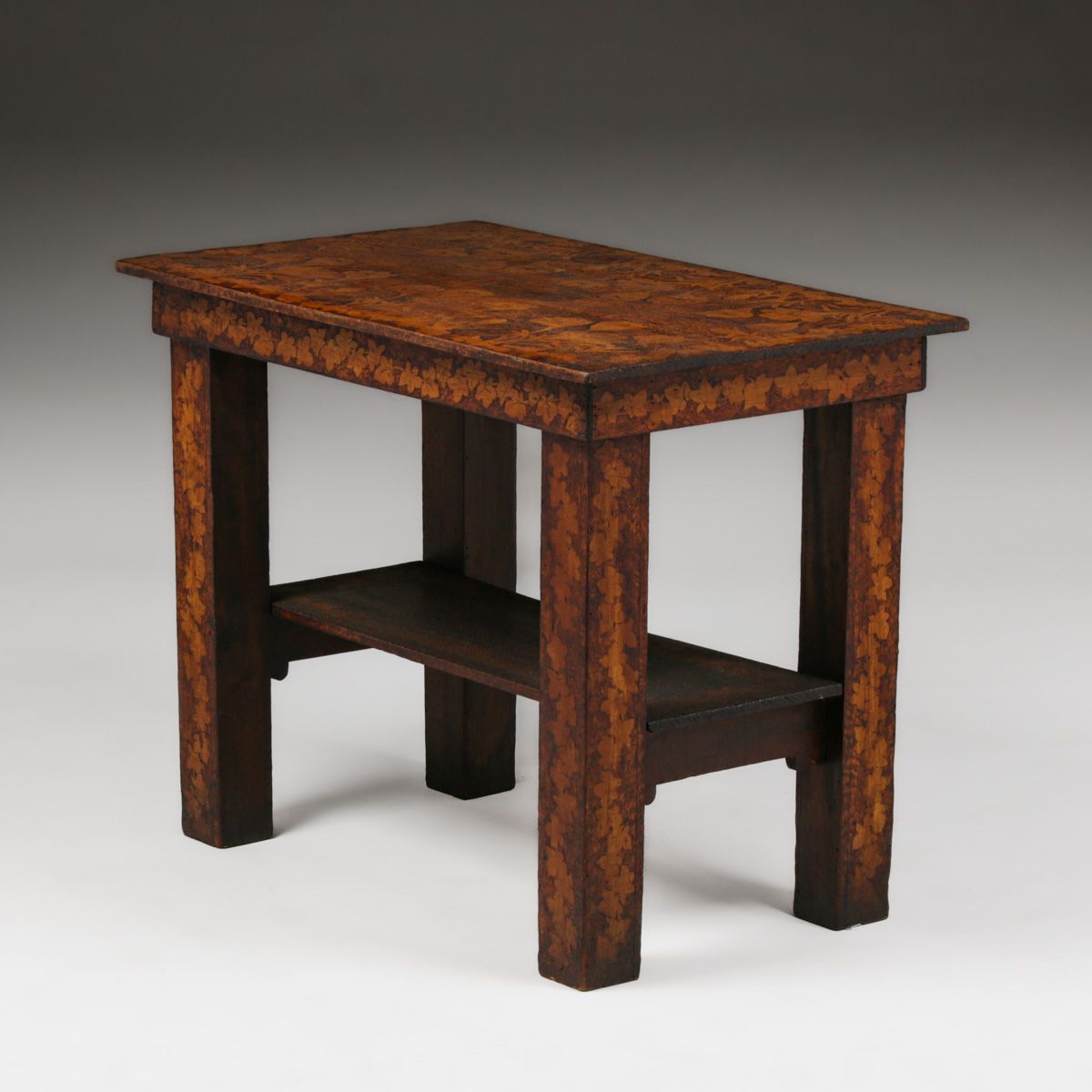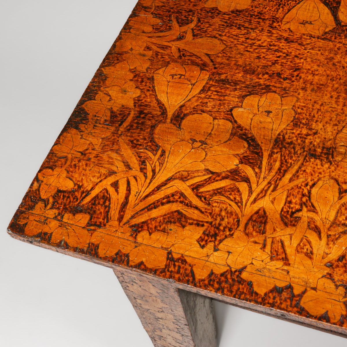 - Arts & Crafts Period Hand-Carved Pyrography Library Table c1910