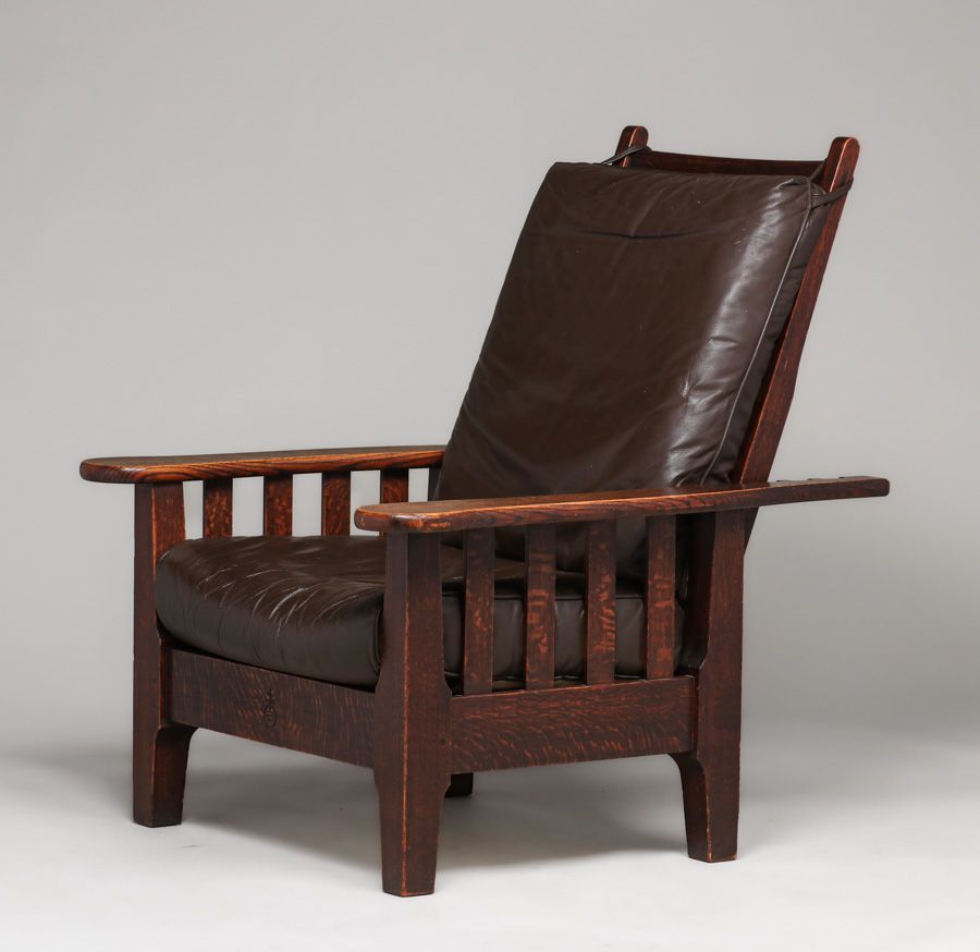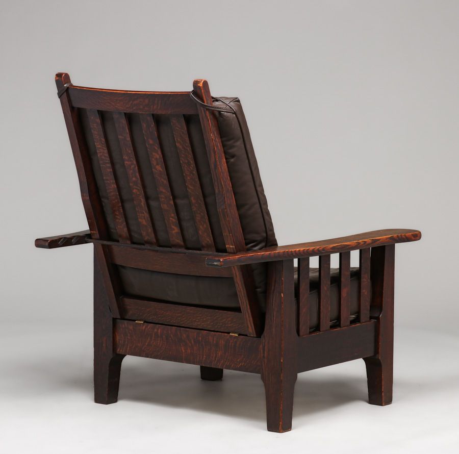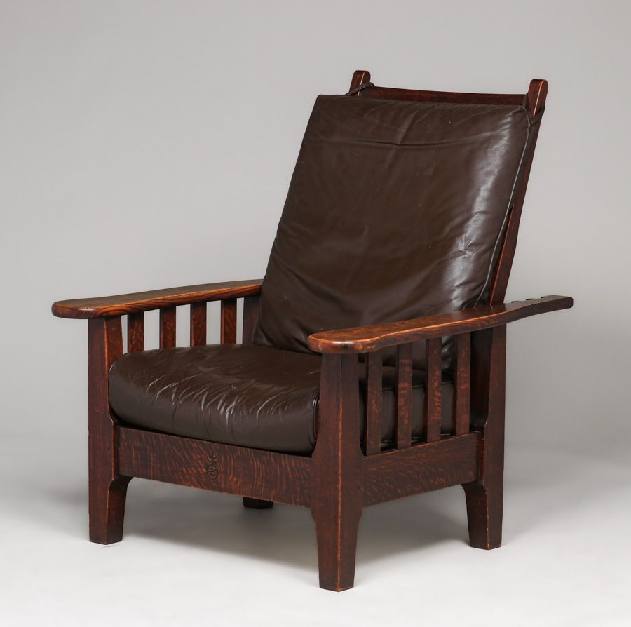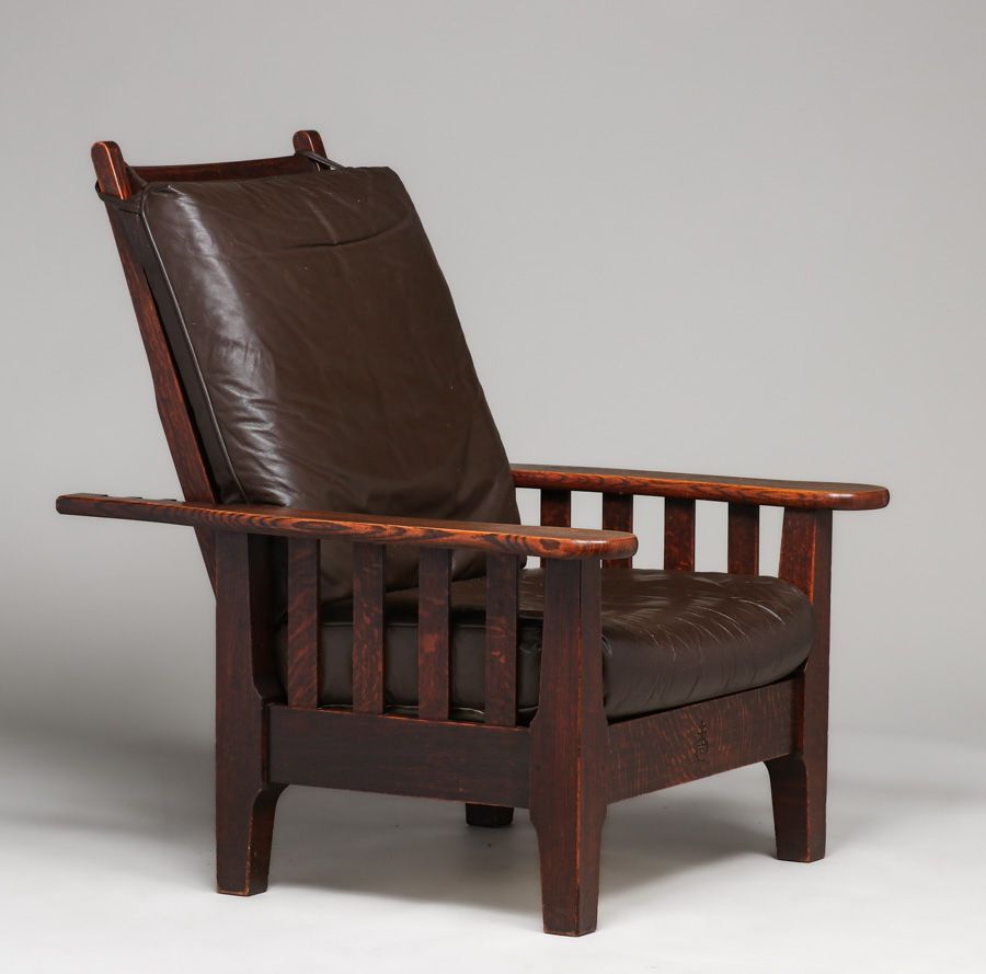 Roycroft #045 Slatted Morris Chair c1905. Signed. Excellent original finish. Very sturdy and comfortable. 44.5"h x 36.75"w x 40"d