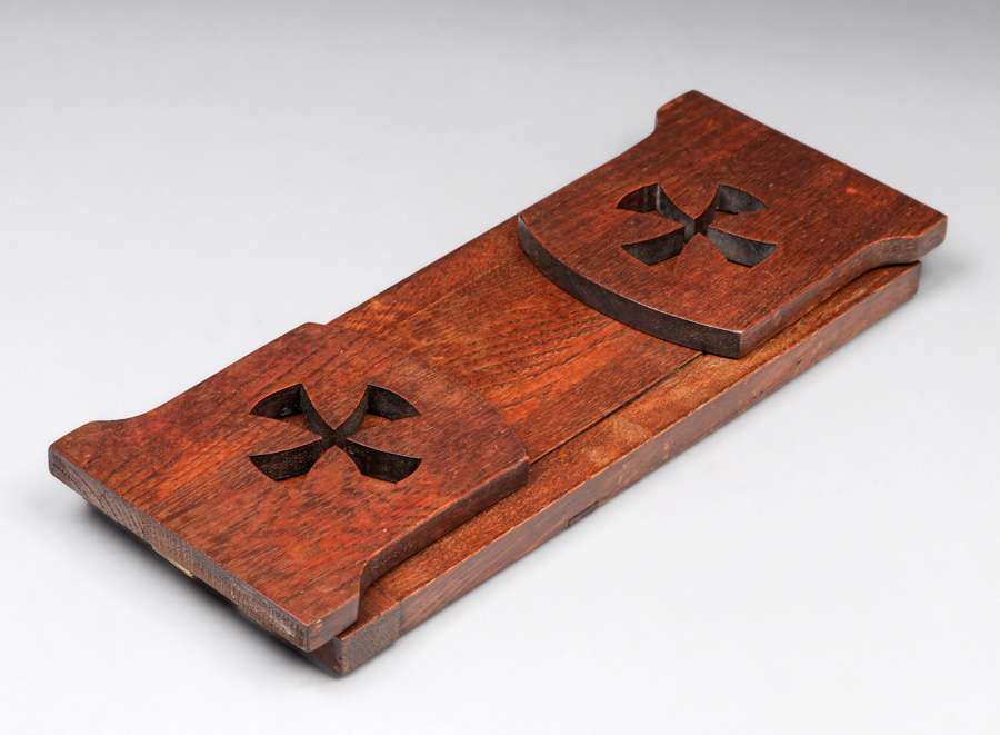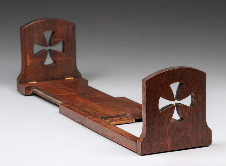 Shop of the Crafters - Cincinnati Oak Table-Top Bookrack c1910. Unsigned. Excellent original finish. 16"w x 6"h. Expands to 22.5"w x 6"h SOLD