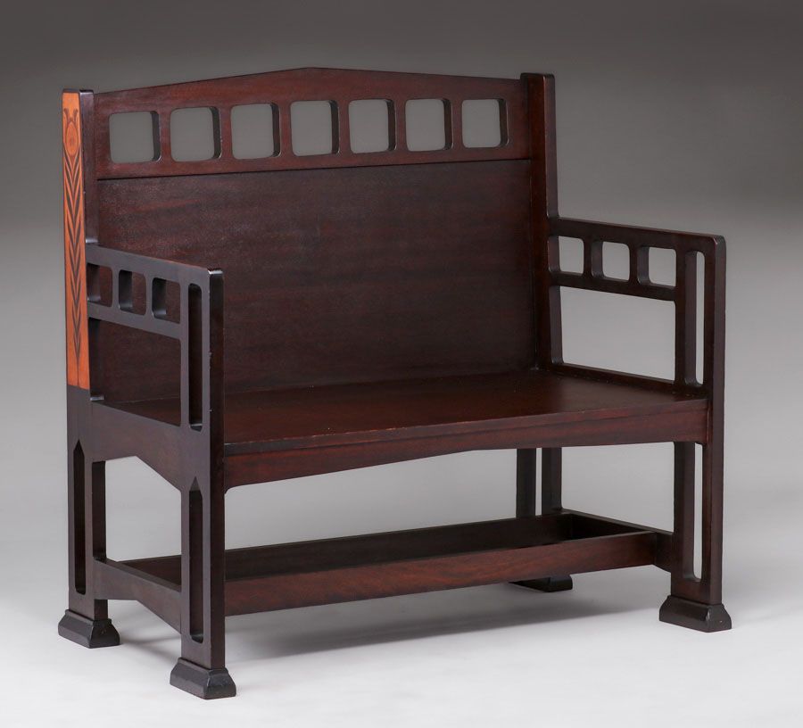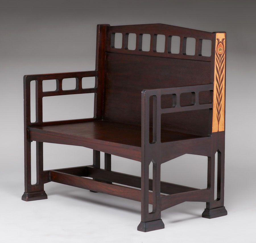 - Shop of the Crafters - Cincinnati, Ohio Inlaid Cutout Mahogany Hall Bench c1905