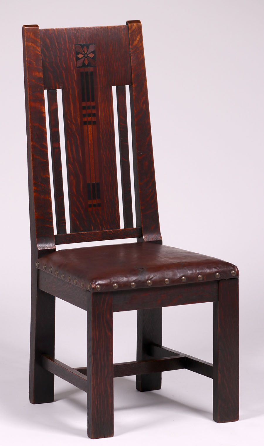 Shop of the Crafters Inlaid Side Chair c1905-1910. Signed. Excellent original finish. Very sturdy. 43.5"h x 18.5"w x 19"d SOLD