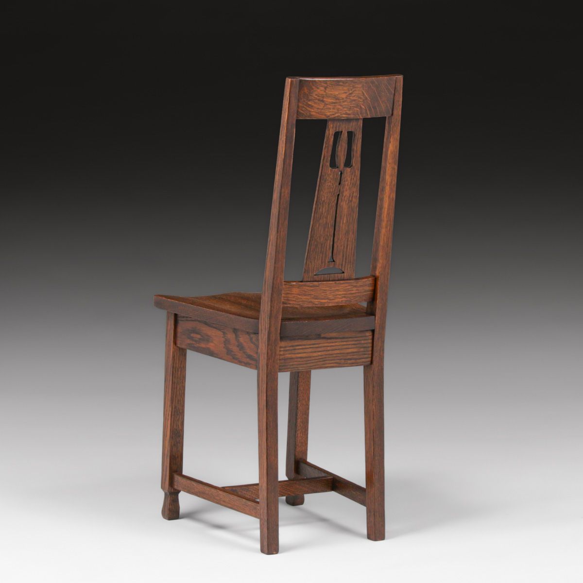 Early Stickley Brothers Cutout Side Chair c1901. Unsigned. Very nicely refinished. Rock solid sturdy. 38.25"h x 15.75"w x 15.25"d