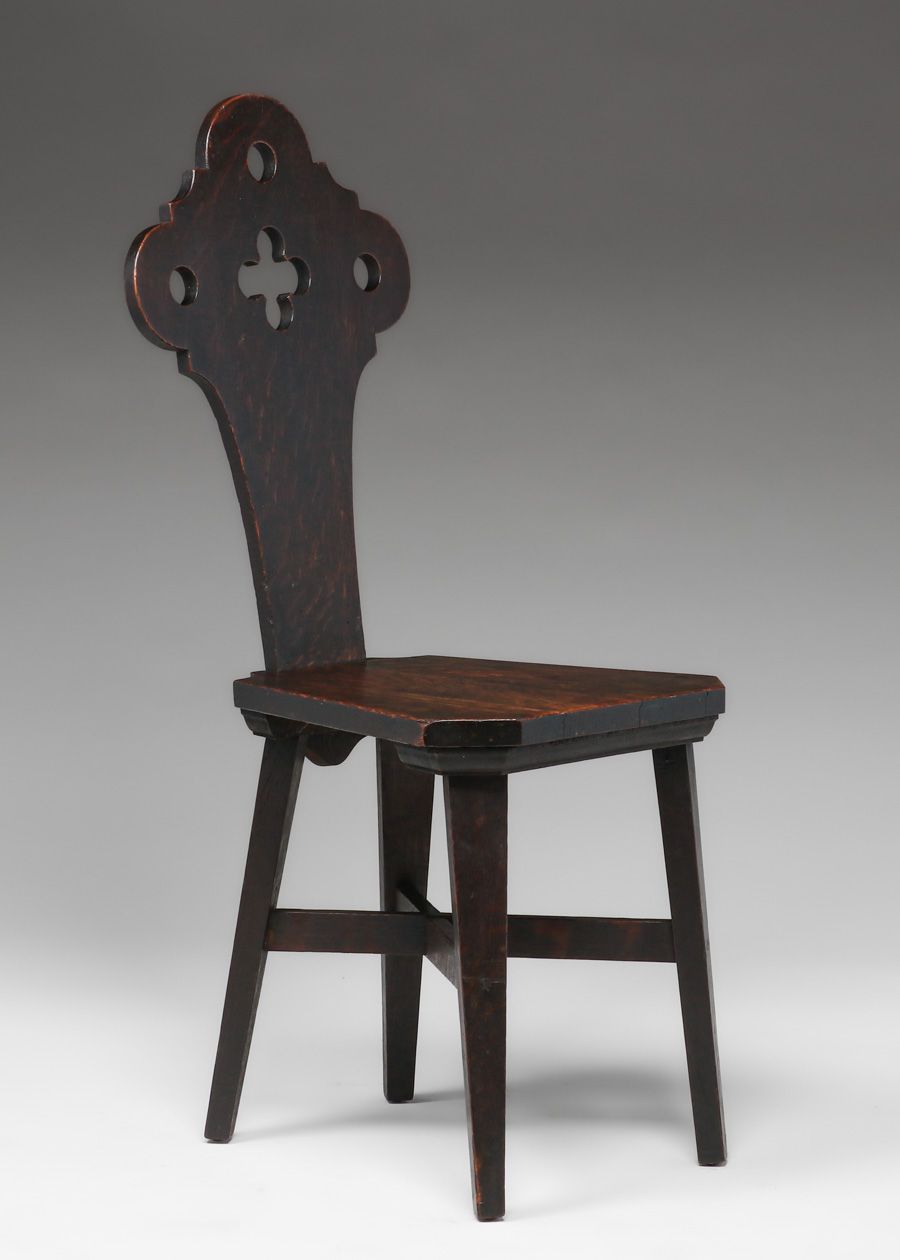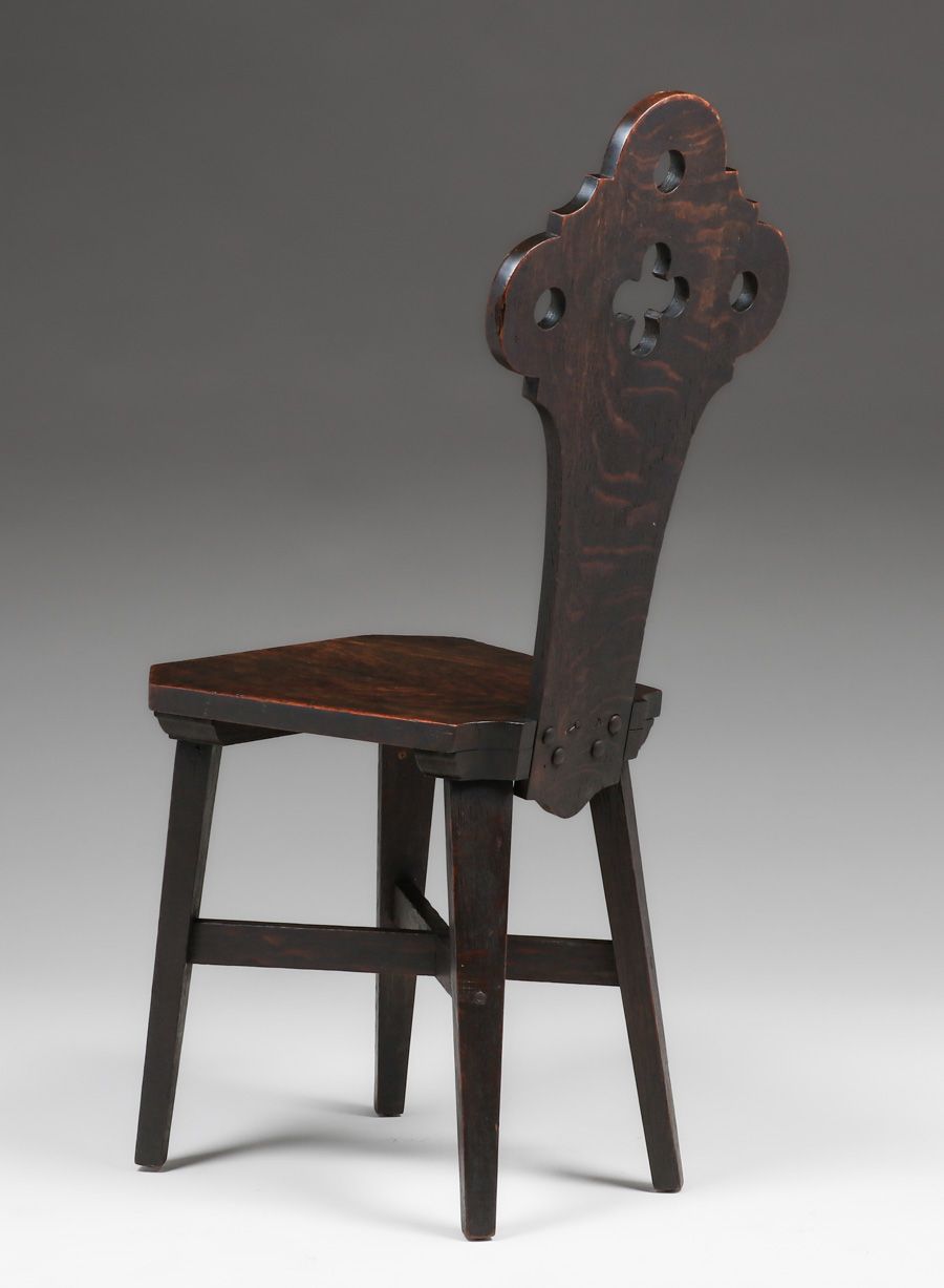 Early Stickley Brothers Cutout Side Chair c1902. Unsigned. Excellent original finish. Very sturdy. 40"h x 15.75"w x 16"d SOLD