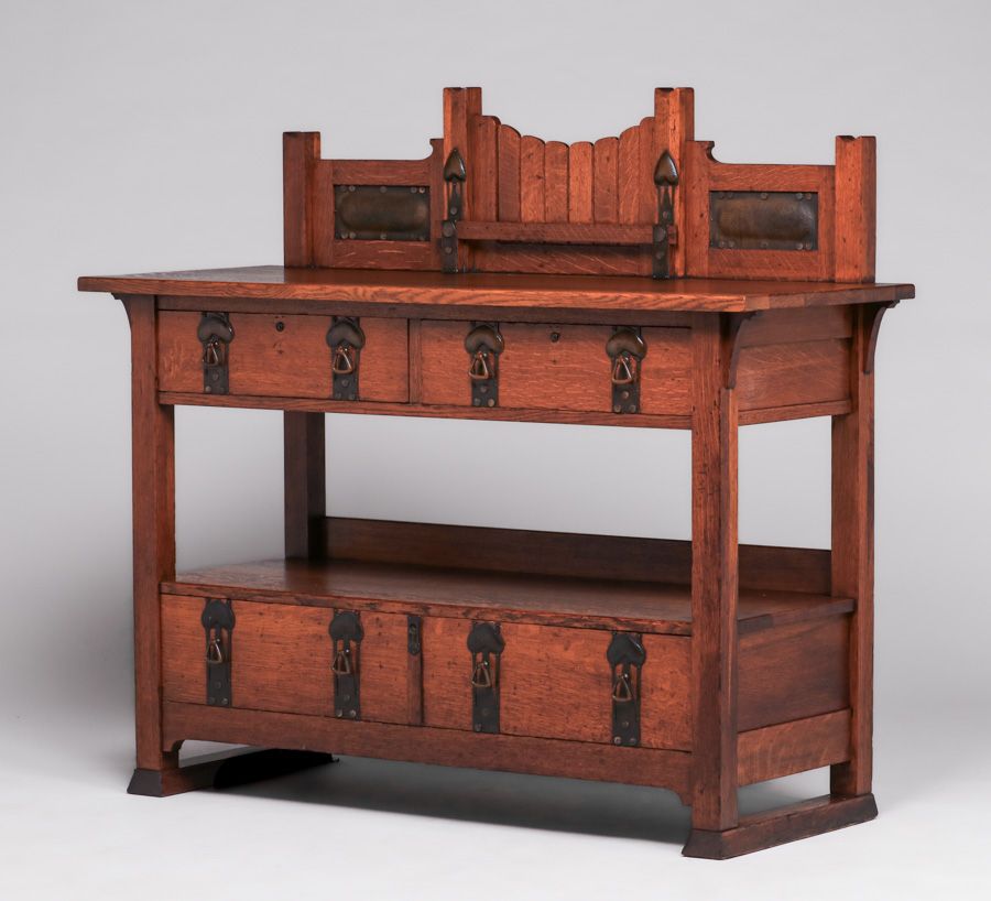 Early Stickley Brothers Four-Drawer Server c1902. Incredible example of Stickley Brothers hammered copper hardware. Unsigned. Excellent original finish. 54"w x 49"h x 21.25"d SOLD