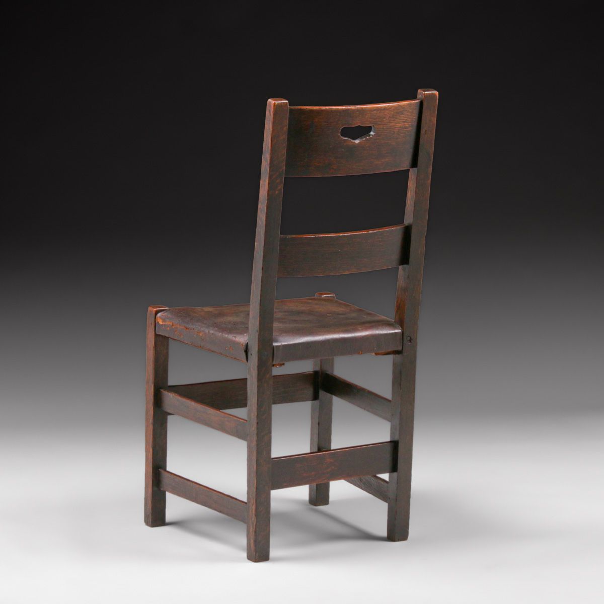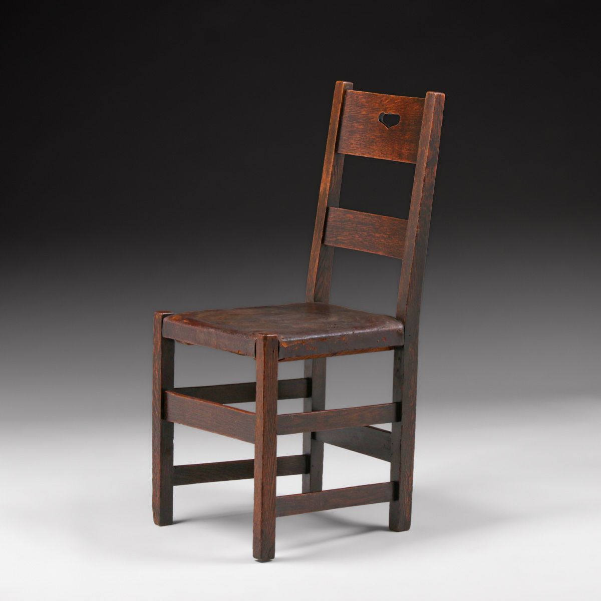 Early Stickley Brothers Heart Cutout Side Chair c1902. Unsigned. Excellent original finish and original leather. Very sturdy.