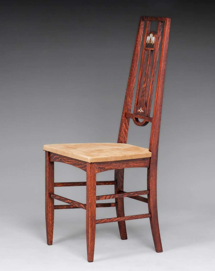 - Early Stickley Brothers Inlaid Side Chair c1901