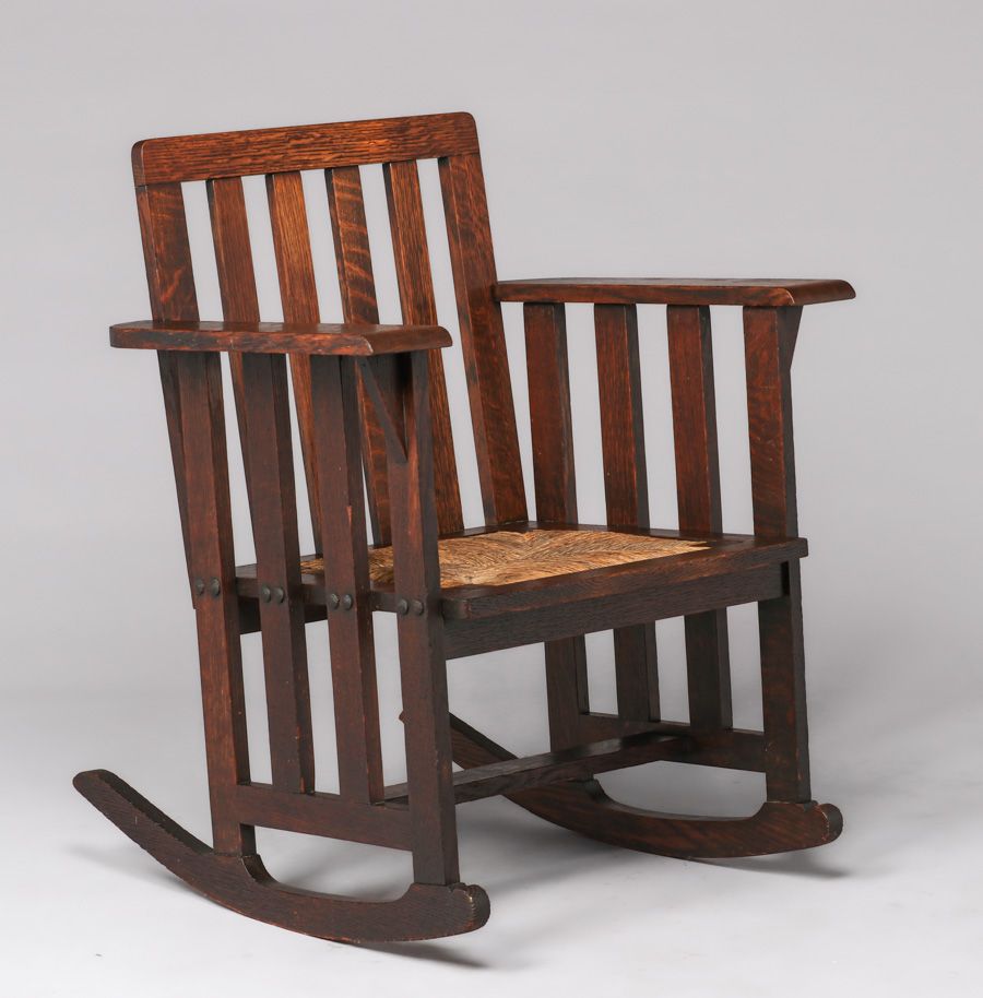 - Early Stickley Brothers Slatted Rocker c1902