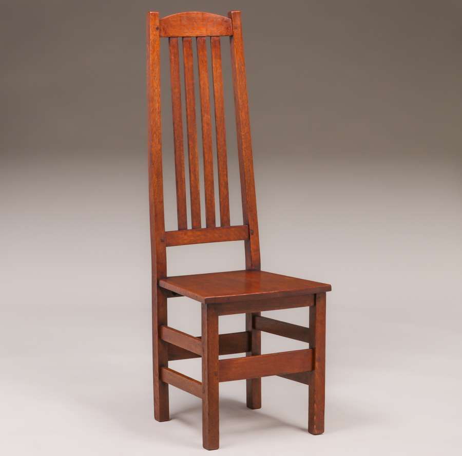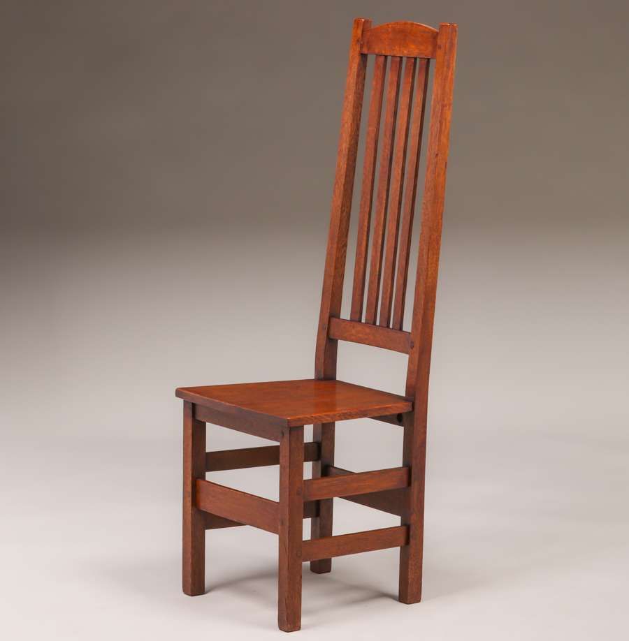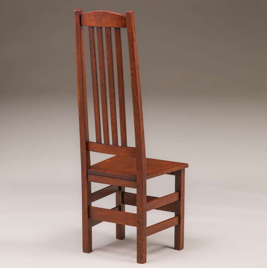 Early Stickley Brothers Tallback Side Chair c1903. Unsigned. Color added to original finish. From the Collection of Don Marek. 46.5"h x 16"w x 14.5"d SOLD