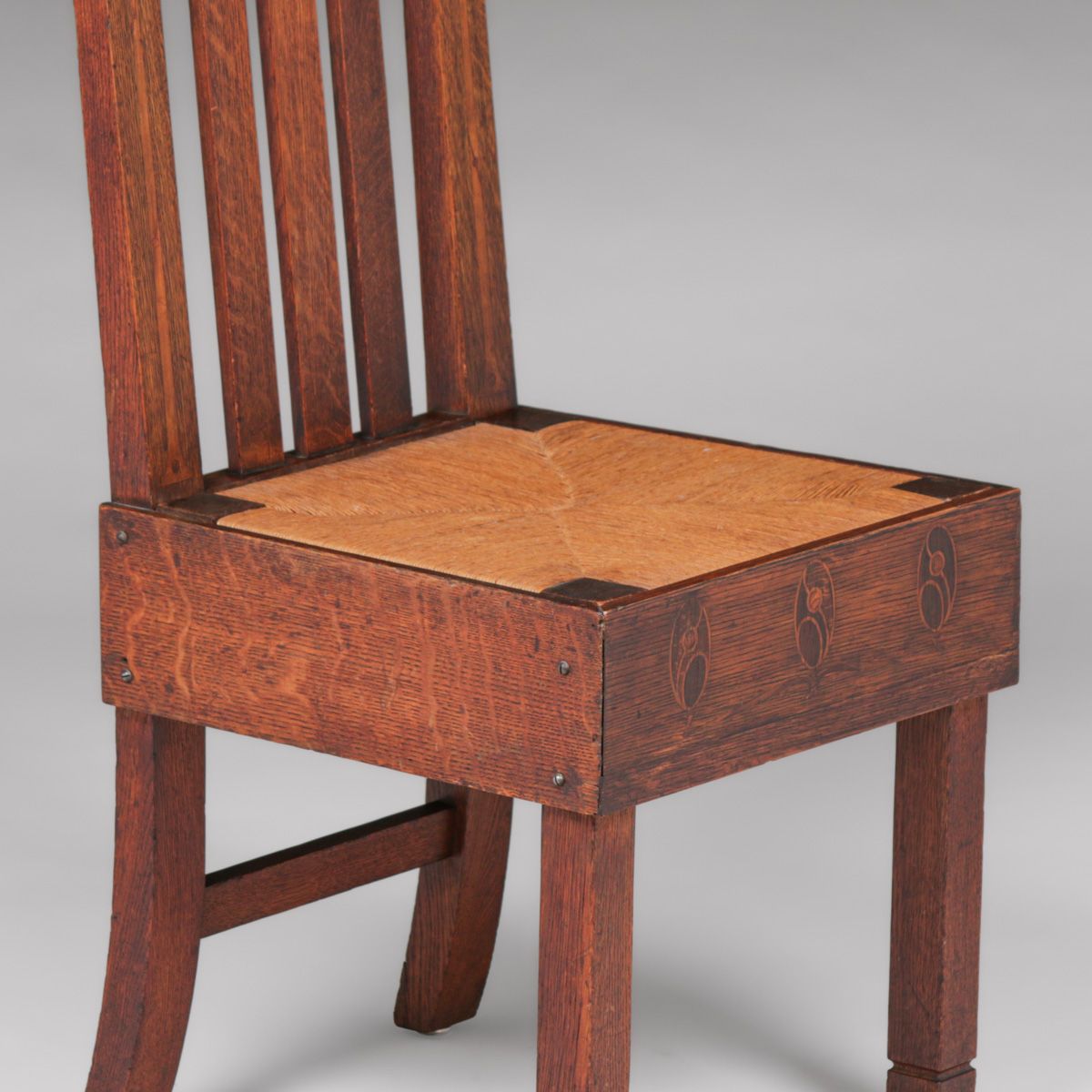 - Early Stickley Brothers "The Bewdley" Inlaid Hall Chair c1901