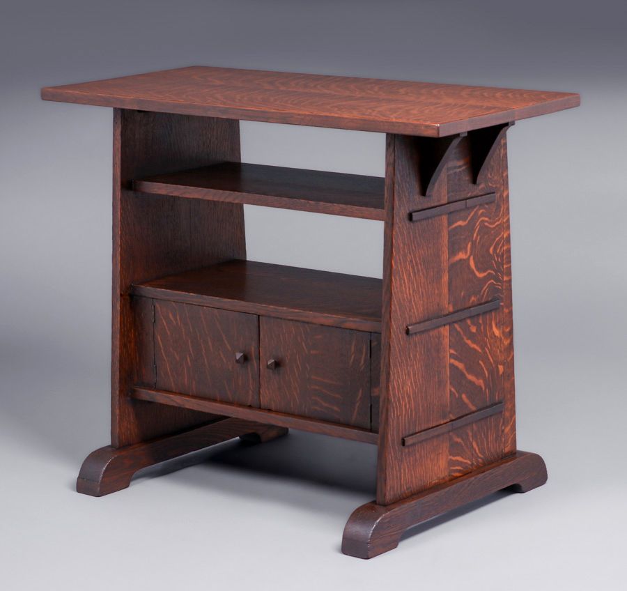 Rare Stickley Brothers Trestle Table Cabinet c1905. Unsigned. Very nicely refinished. The two lower doors were probably a custom order for this very functional table. 36"w x 29.75"h x 17.75"d (22"d at base) SOLD