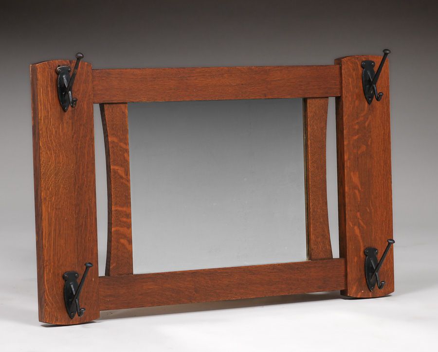 - Stickley Brothers #1291 Oak Hanging Hall Mirror c1910