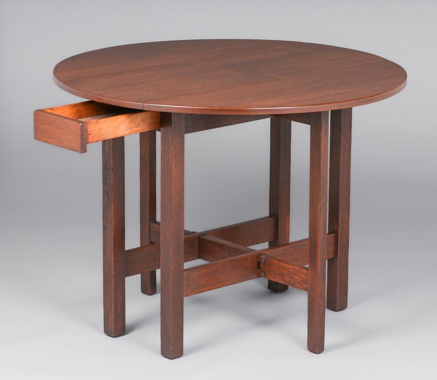 Stickley Brothers Dropleaf Table c1910. Signed. Very nicely refinished. Very sturdy. 40"w x 15.5"d x 30.25"h (40"d when fully open) SOLD