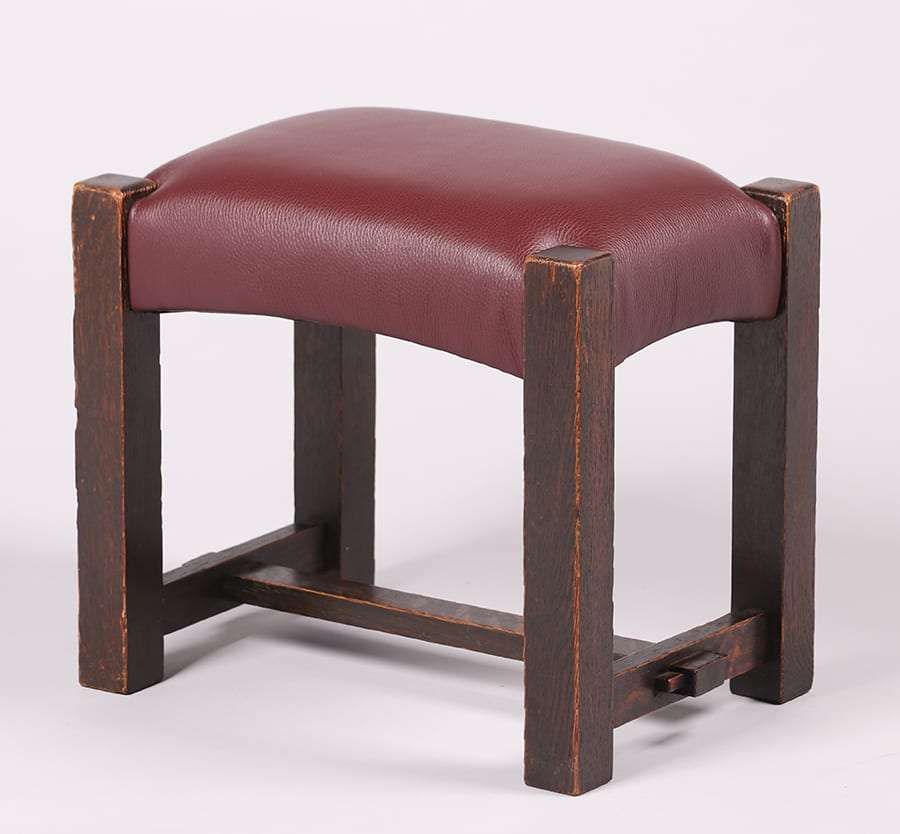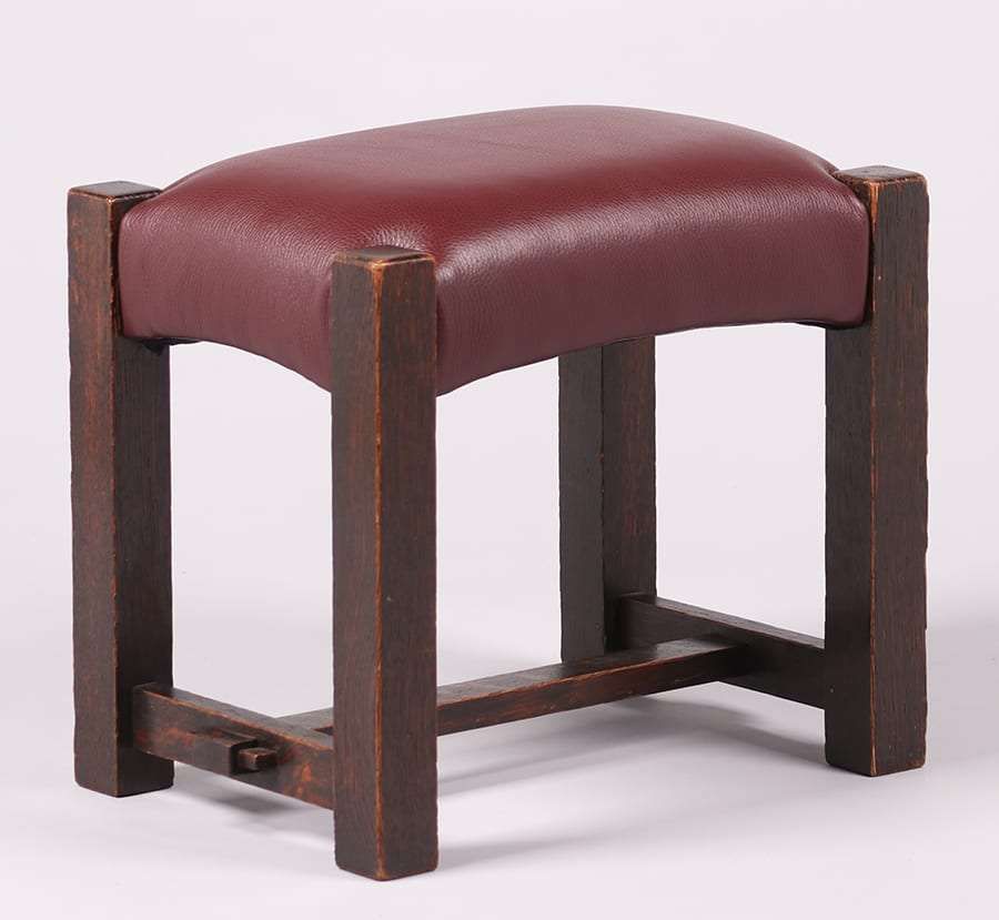 Stickley Brothers footstool. Unsigned. Excellent dark original finish. 15.5″h x 17″w x 12″d SOLD