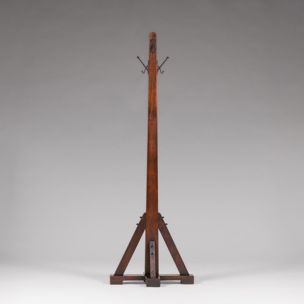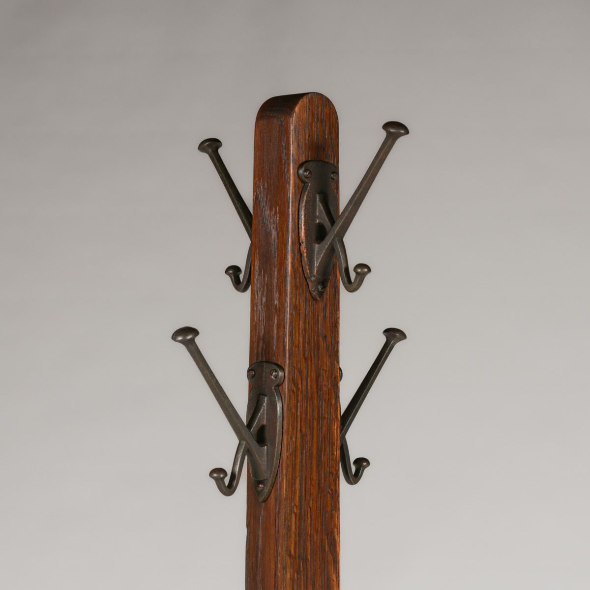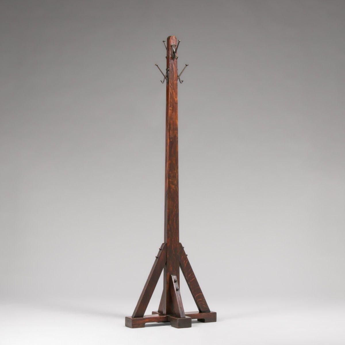 Stickley Brothers Oak Coatrack c1910. Unsigned. Excellent original finish. 72"h x 24"w x 14"d