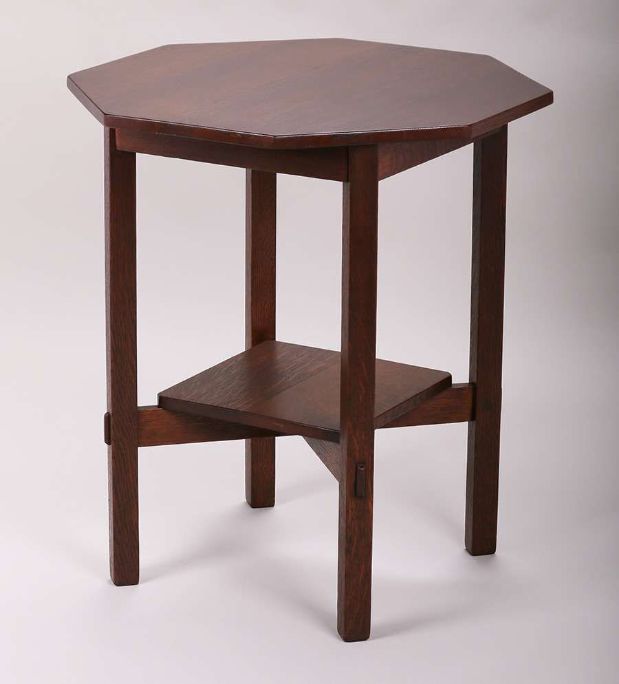 Stickley Brothers octagonal lamp table. Unsigned. Refinished. 30"h x 24"d SOLD