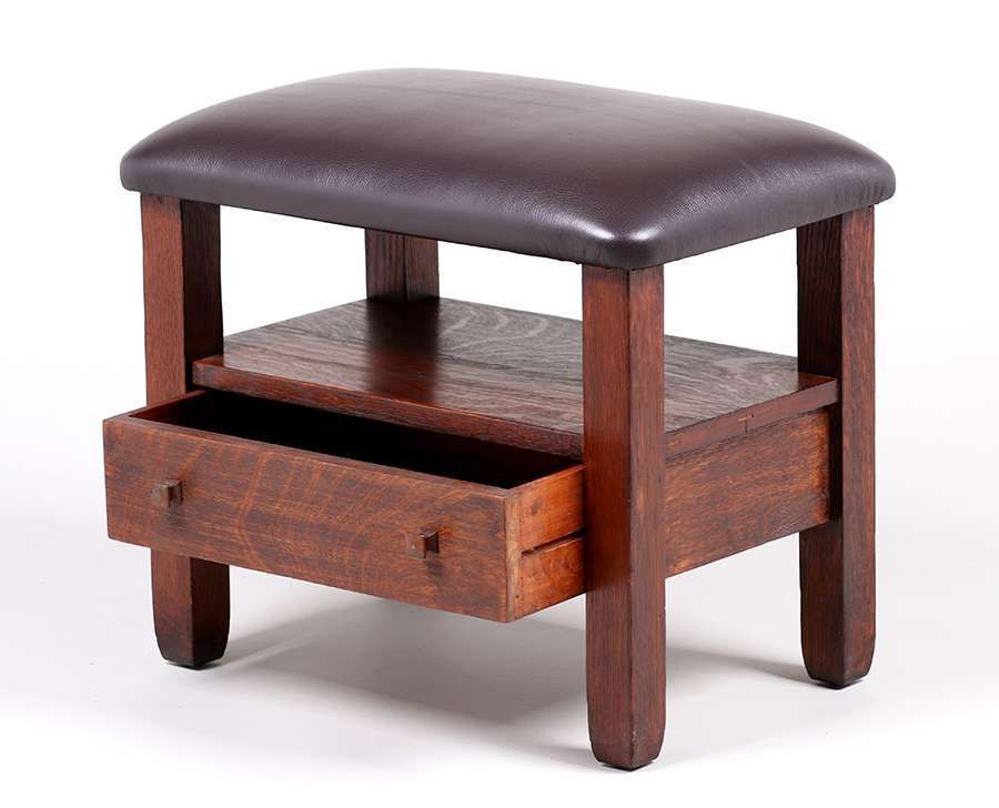 - Stickley Brothers One-Drawer Footstool c1910