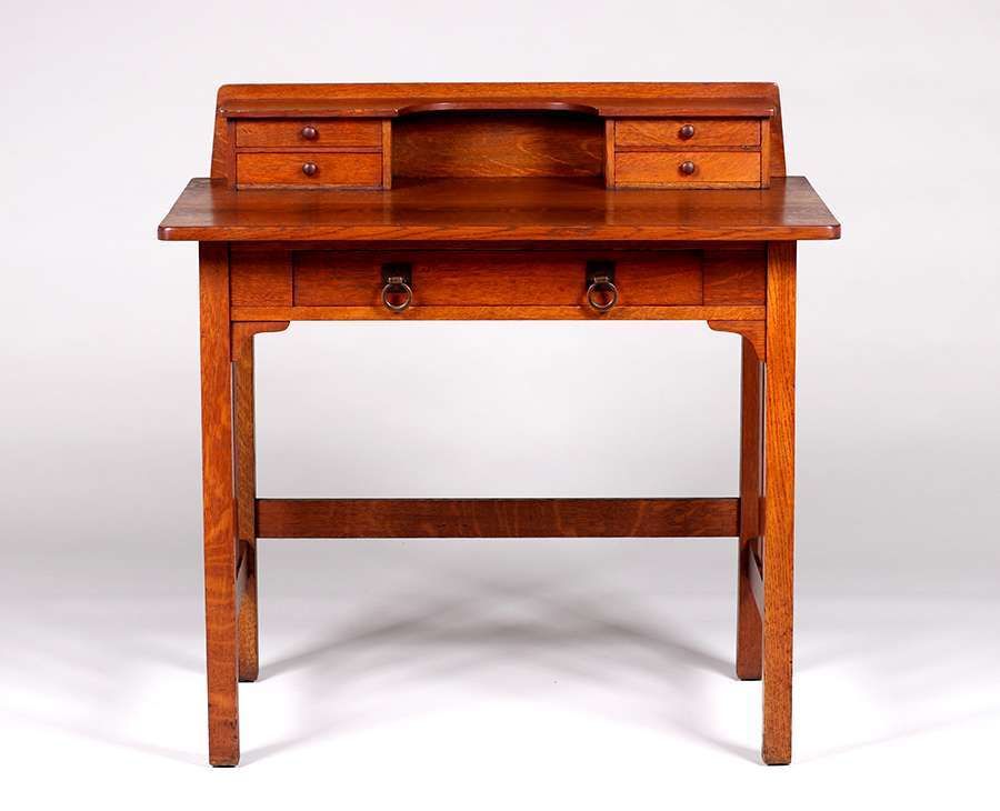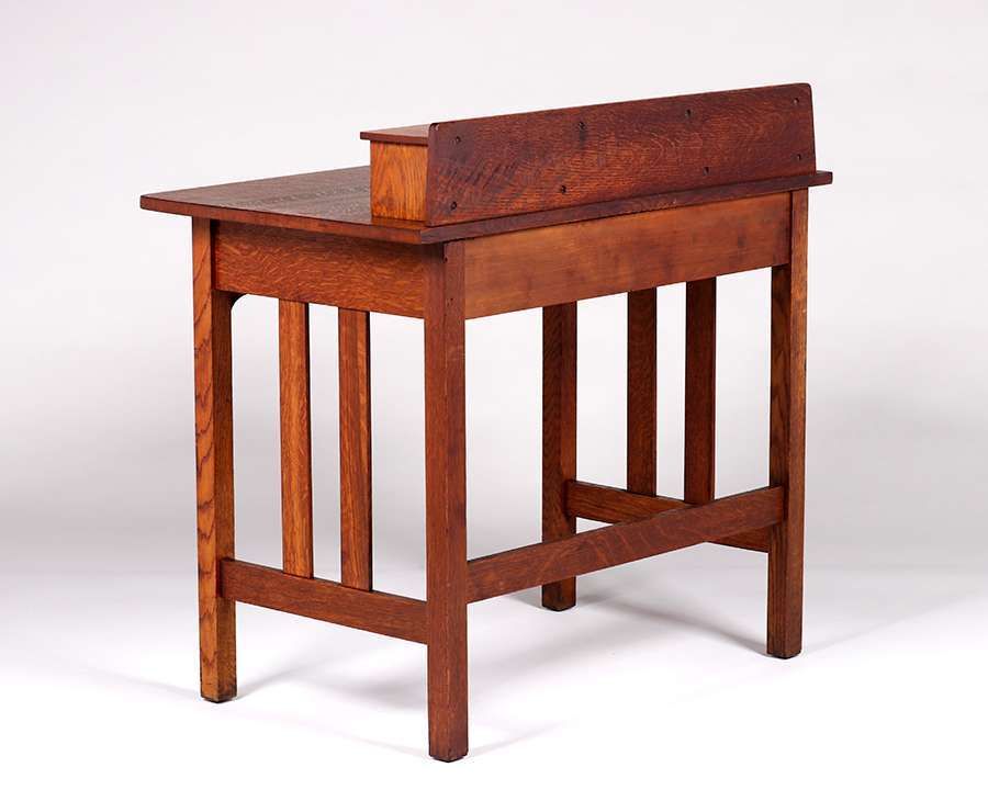 Stickley Brothers postcard desk #6717. Unsigned except marked "6717". Top refinished perfectly to match original finish base. 36"w x 23"d x 35.5"h SOLD