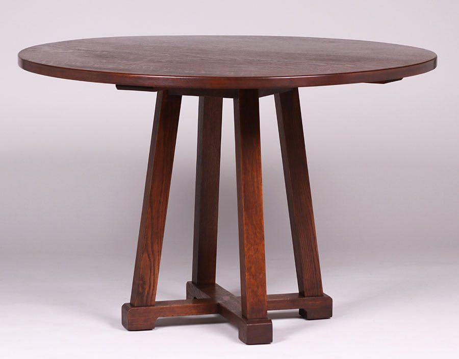 Stickley Brothers Prairie School small dining table. Signed. Color added to original finish. 45"d x 30"h SOLD