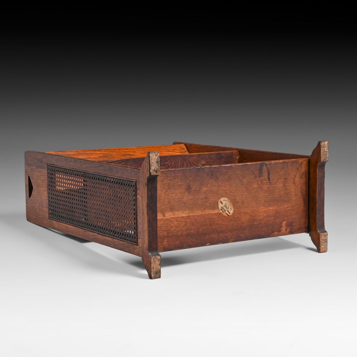 - Stickley Brothers Prairie School Oak & Cane Book Trough c1910
