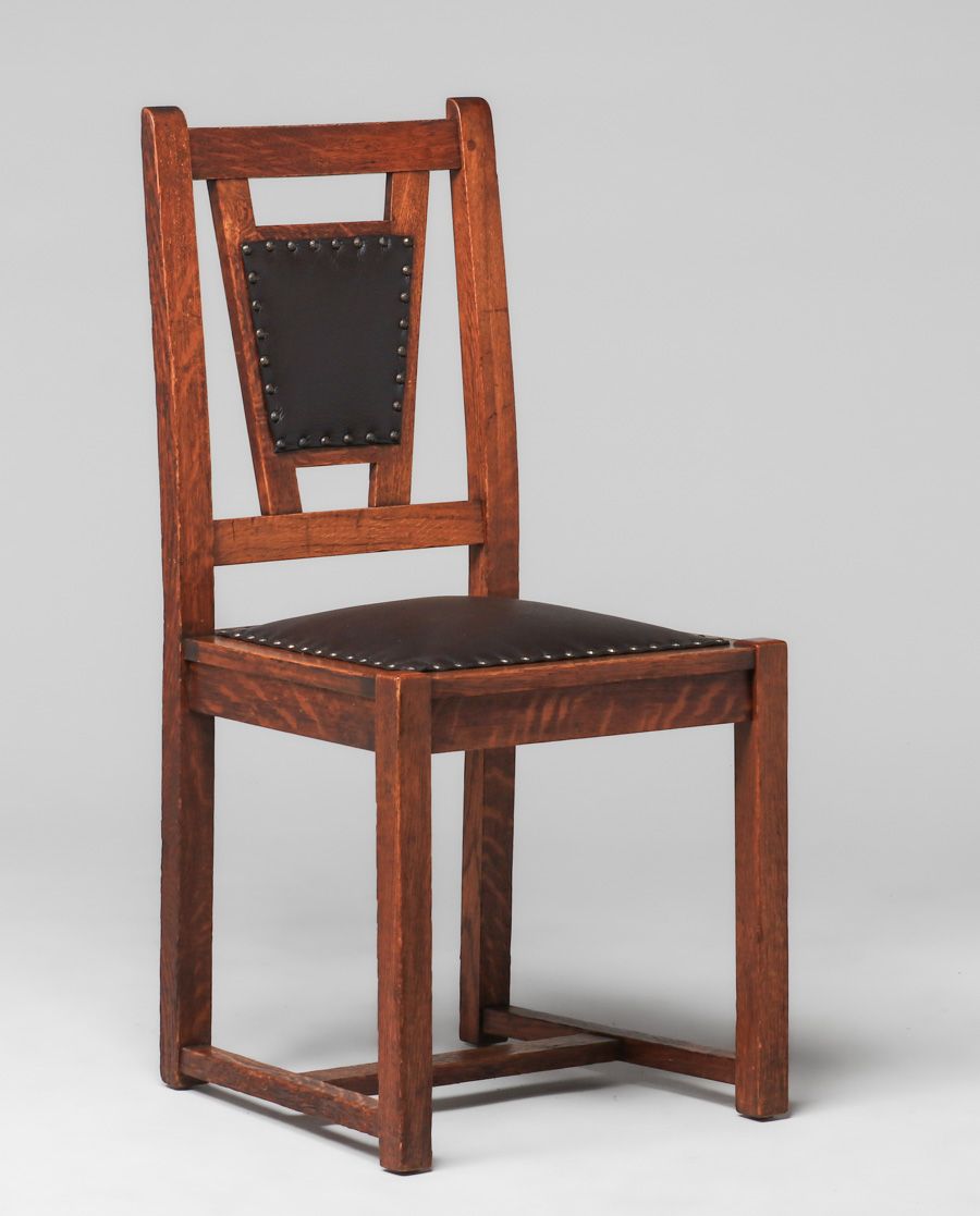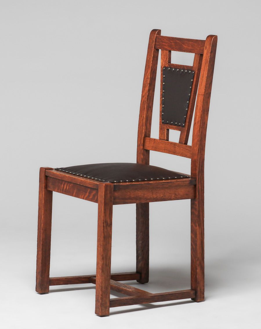 Stickley Brothers Set of 4 Prairie School Dining Chairs c1915. Signed. Excellent original finish. Rock solid sturdy. 37.75″h x 18″w x 17″d SOLD