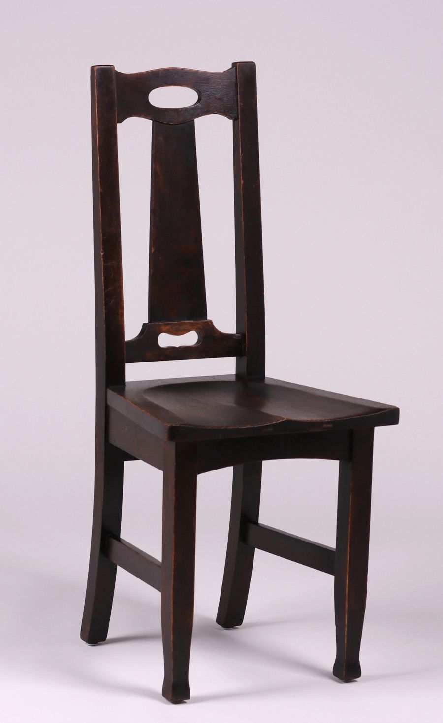 Stickley Brothers #842 side chair with cutout handle. Signed with stenciled number. Excellent original finish. 28"h x 17"w x 15"d. SOLD