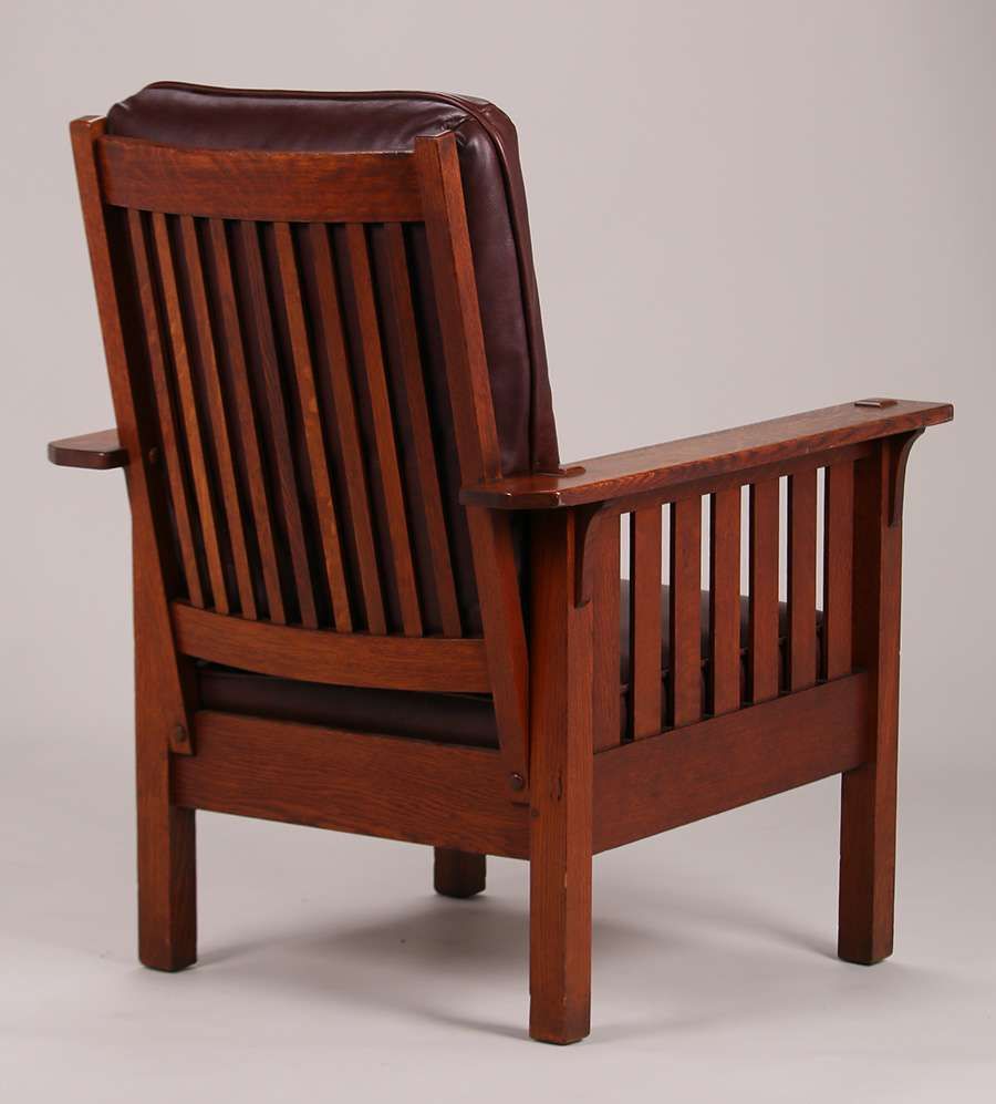 Stickley Brothers slatted armchair. Signed. Original finish. 43"h x 30.5"w x 32"d SOLD