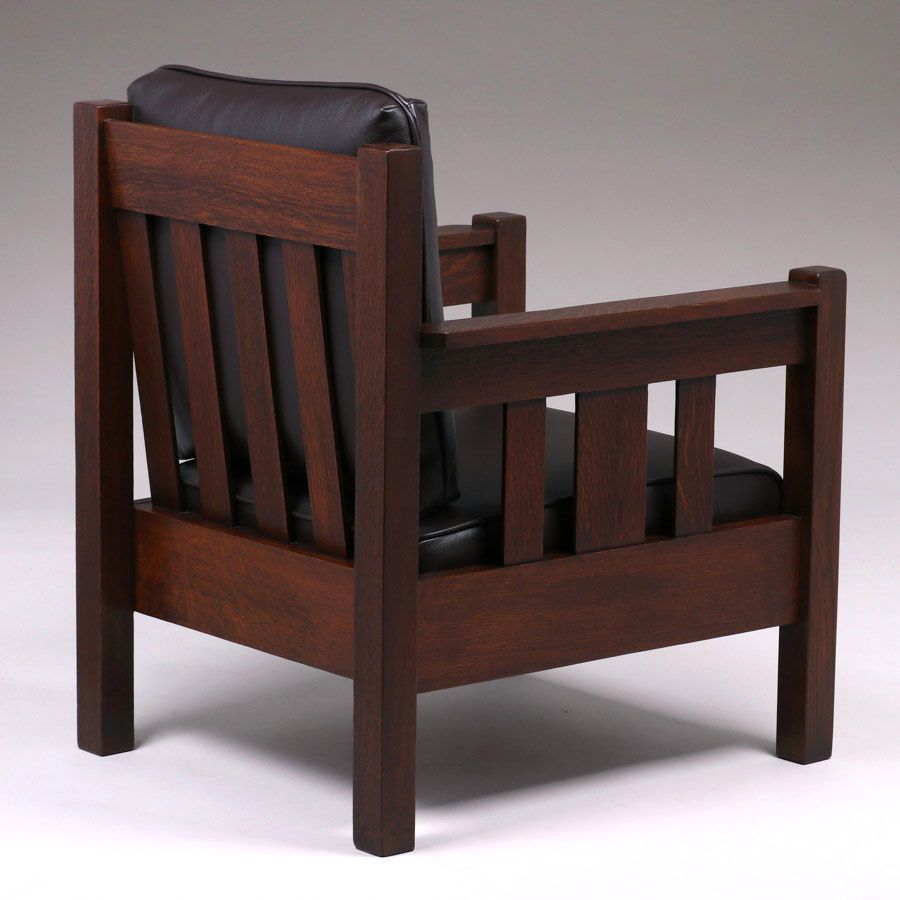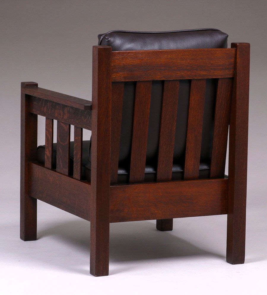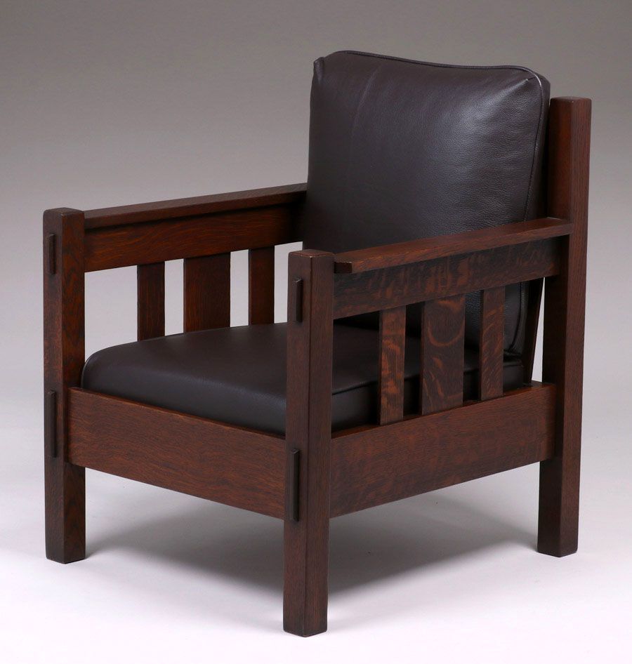 Stickley Brothers Slatted Armchair c1910. Unsigned. Very nicely refinished. Rock solid sturdy. 34"h x 28.5"w x 29.75"d SOLD