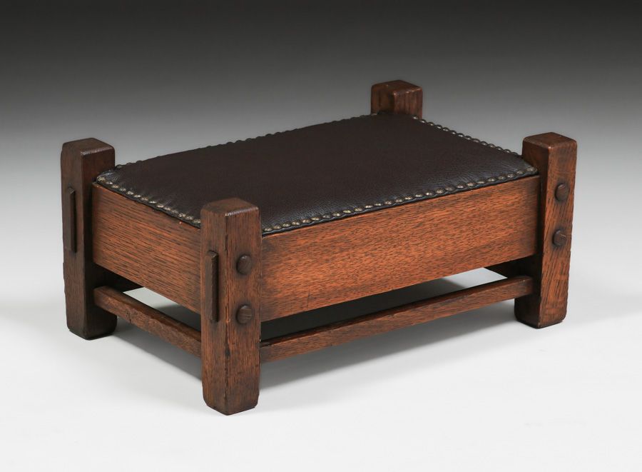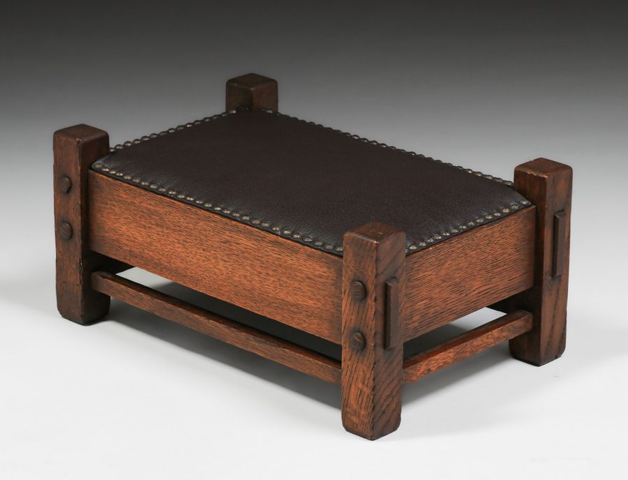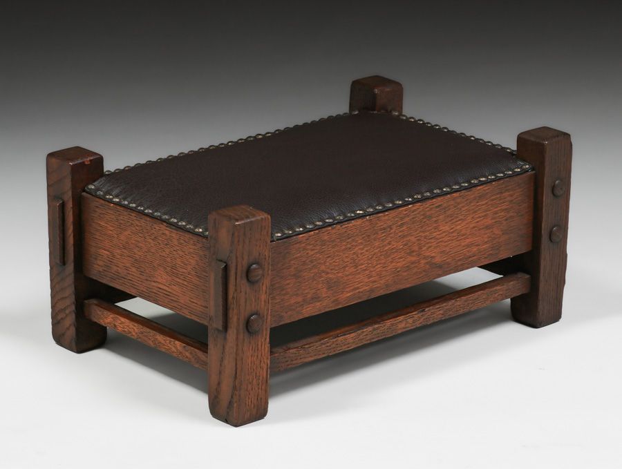 Stickley Brothers Small Oak Footstool c1910. Unsigned. Very nicely refinished. 18.5″w x 12″d 8.5″h