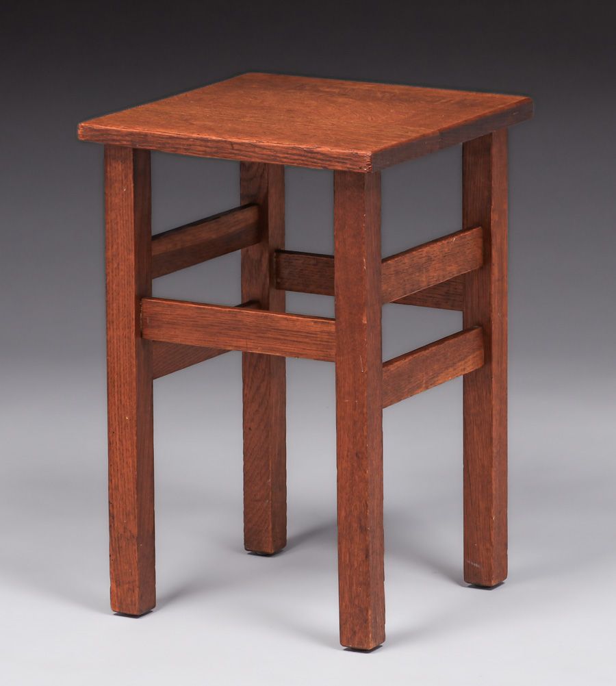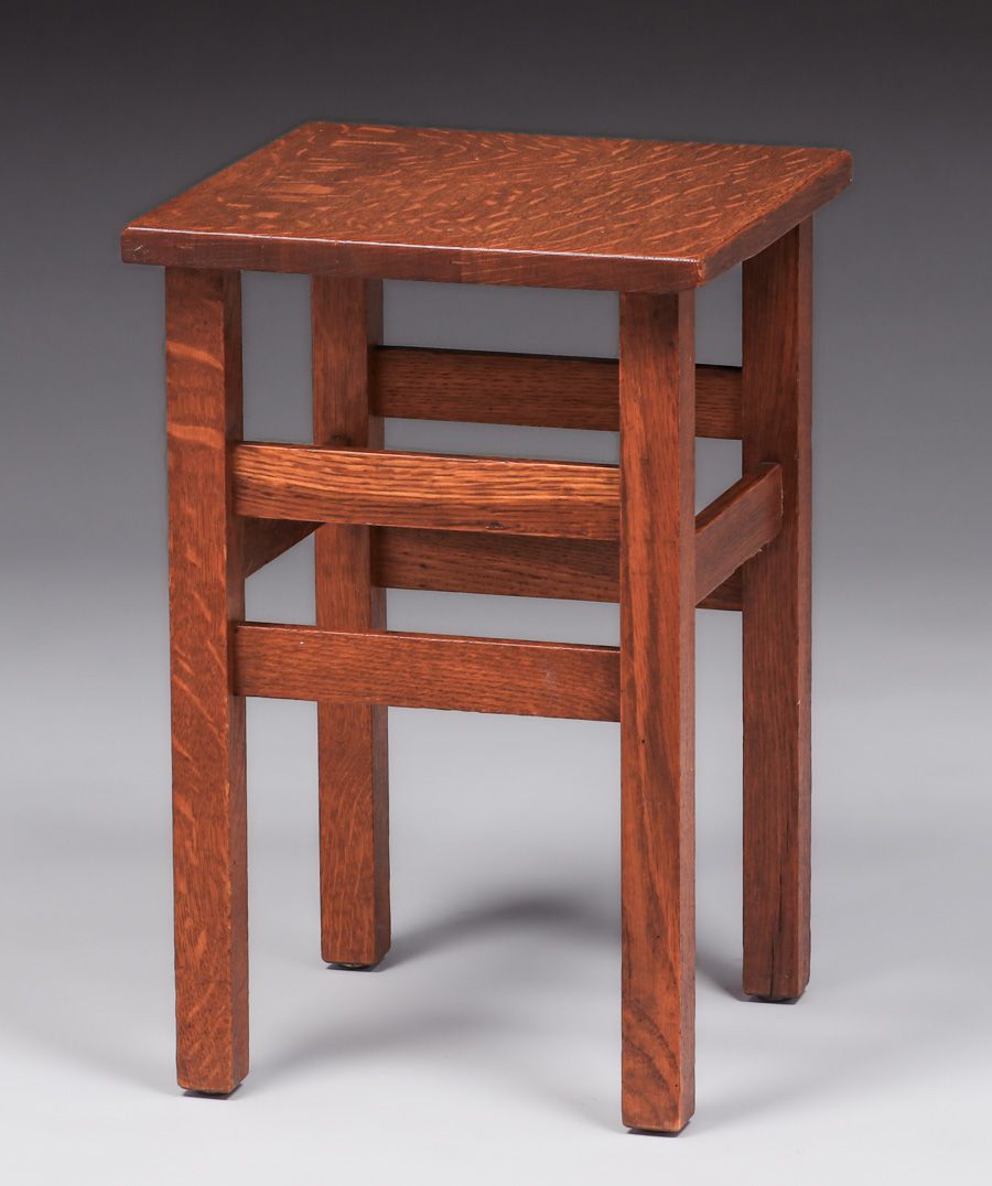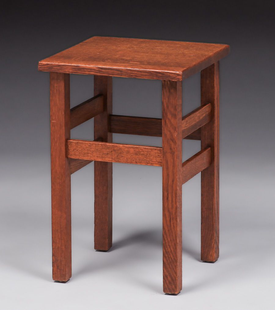 Stickley Brothers Small Square Taboret c1910. Signed only with stenciled number. Excellent original finish. 12" x 12" x 18"h SOLD