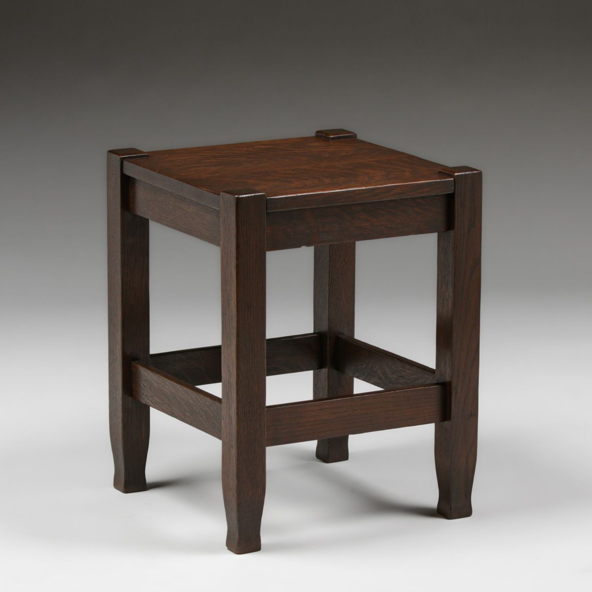 Stickley Brothers Square Oak Taboret c1910. Unsigned. Very nicely refinished 18.25"h x 14.25"w x 14.24"d