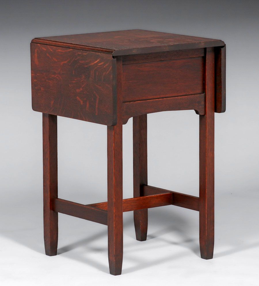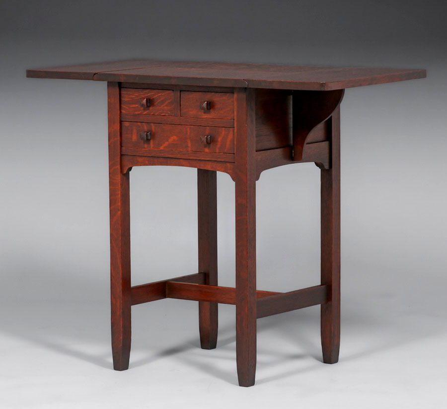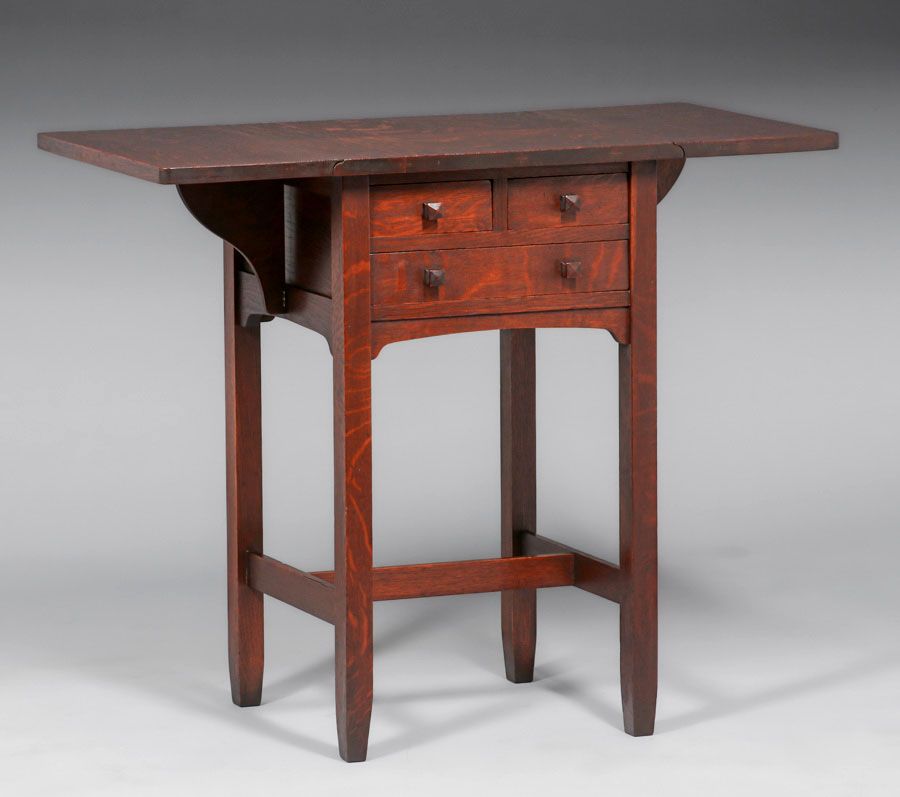 - Stickley Brothers Three-Drawer Dropleaf Side Table c1910
