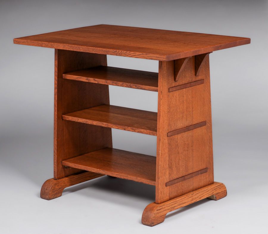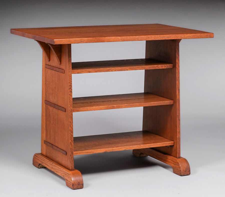 - Stickley Brothers Three-Shelf Trestle Table c1910
