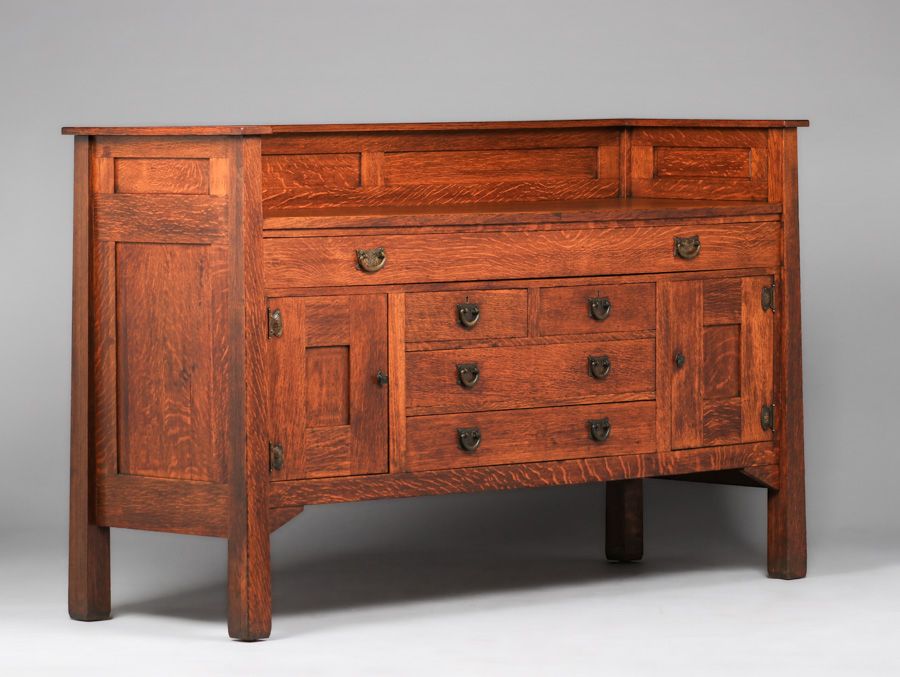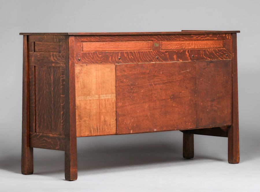 - Stickley Brothers Two-Door Reverse-Tapered Sideboard c1910