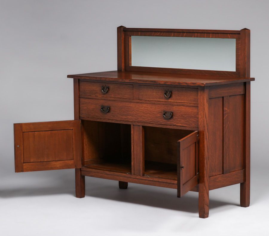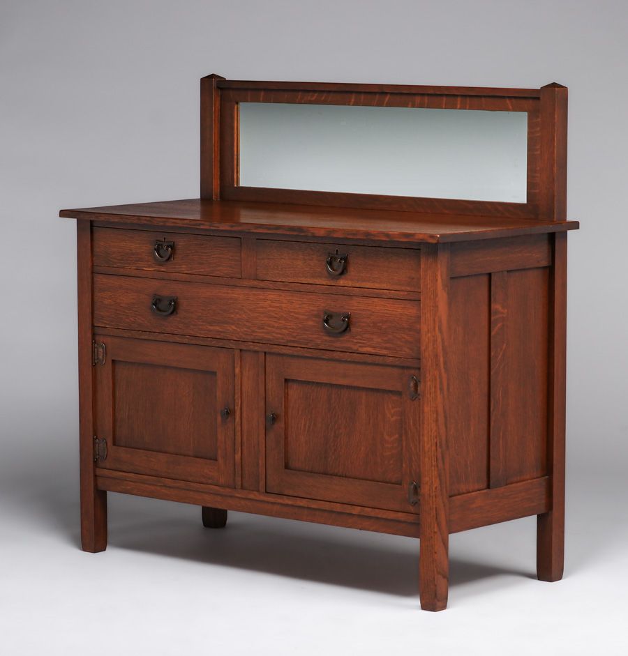 Stickley Brothers Two-Door Sideboard c1910. Signed. Color added to original finish. 50"w x 49.5"h (36"h to top surface) x 22"d SOLD