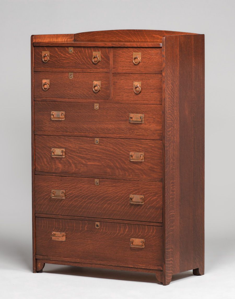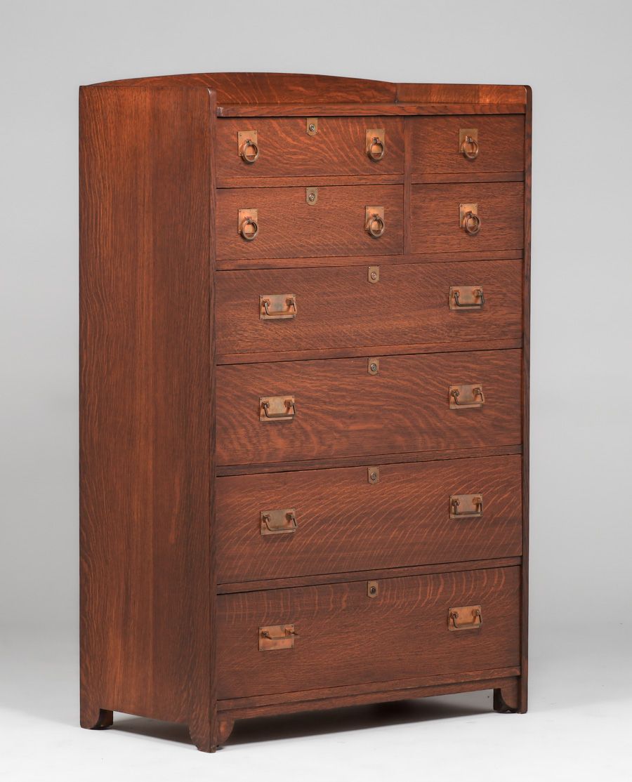 - Tall Stickley Brothers #9022 Eight-Drawer Dresser c1910