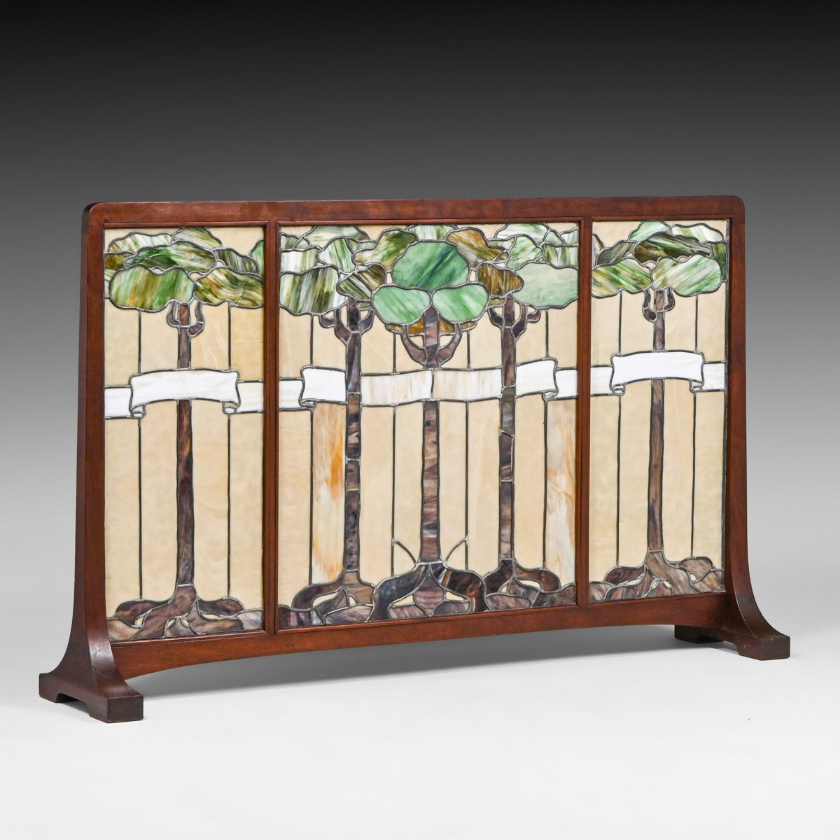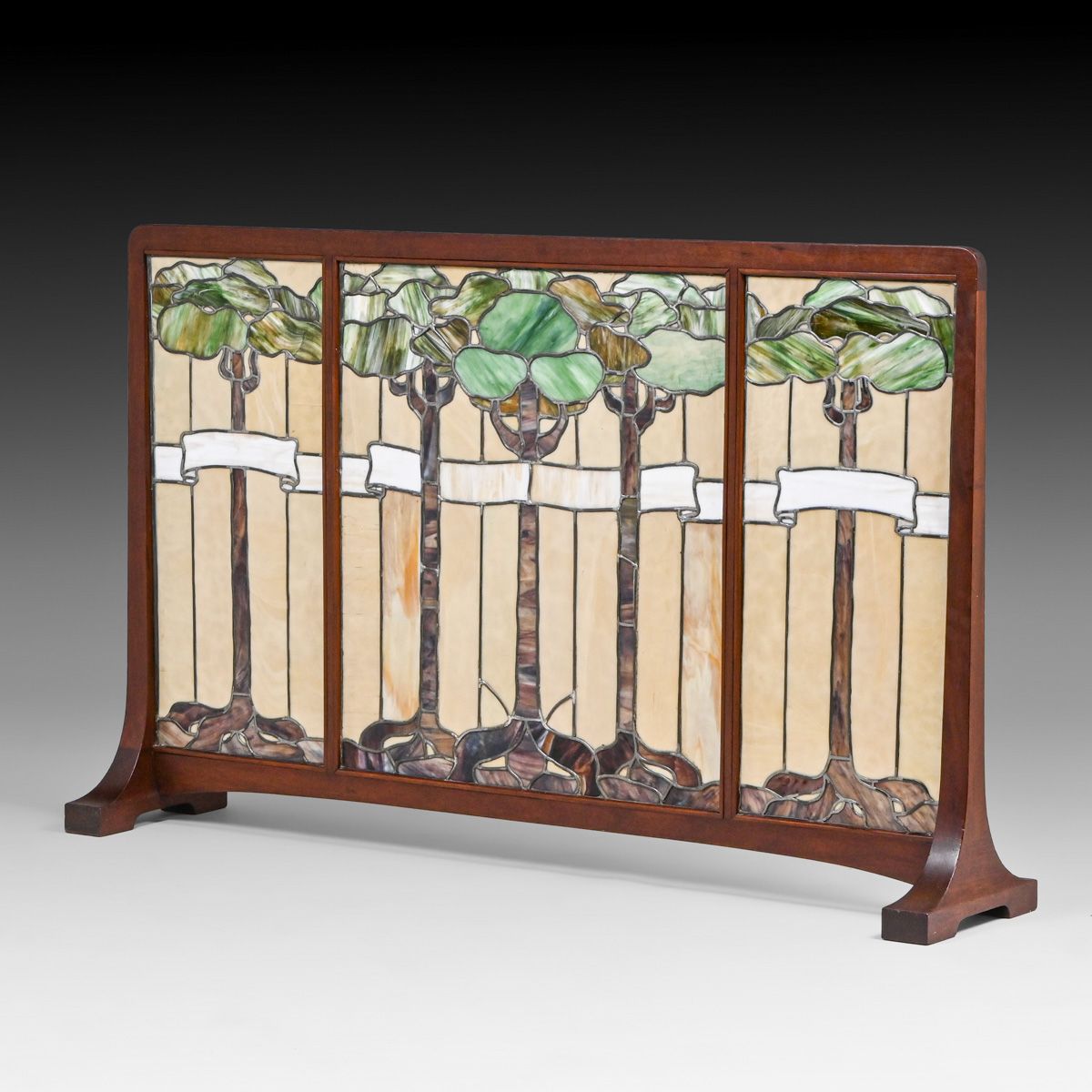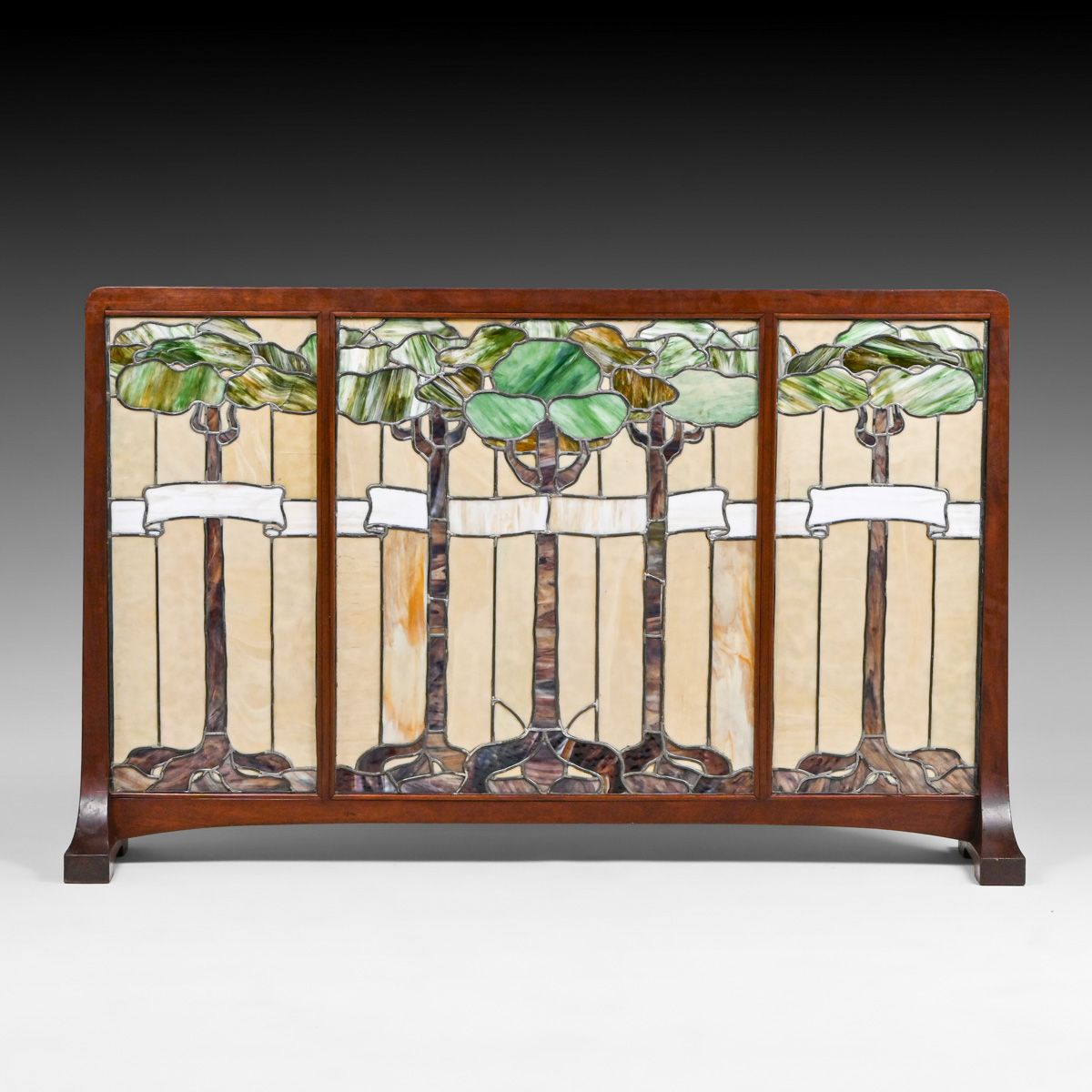 - Tobey - Chicago Mahogany Art Nouveau Leaded Glass Fireplace Screen c1900s