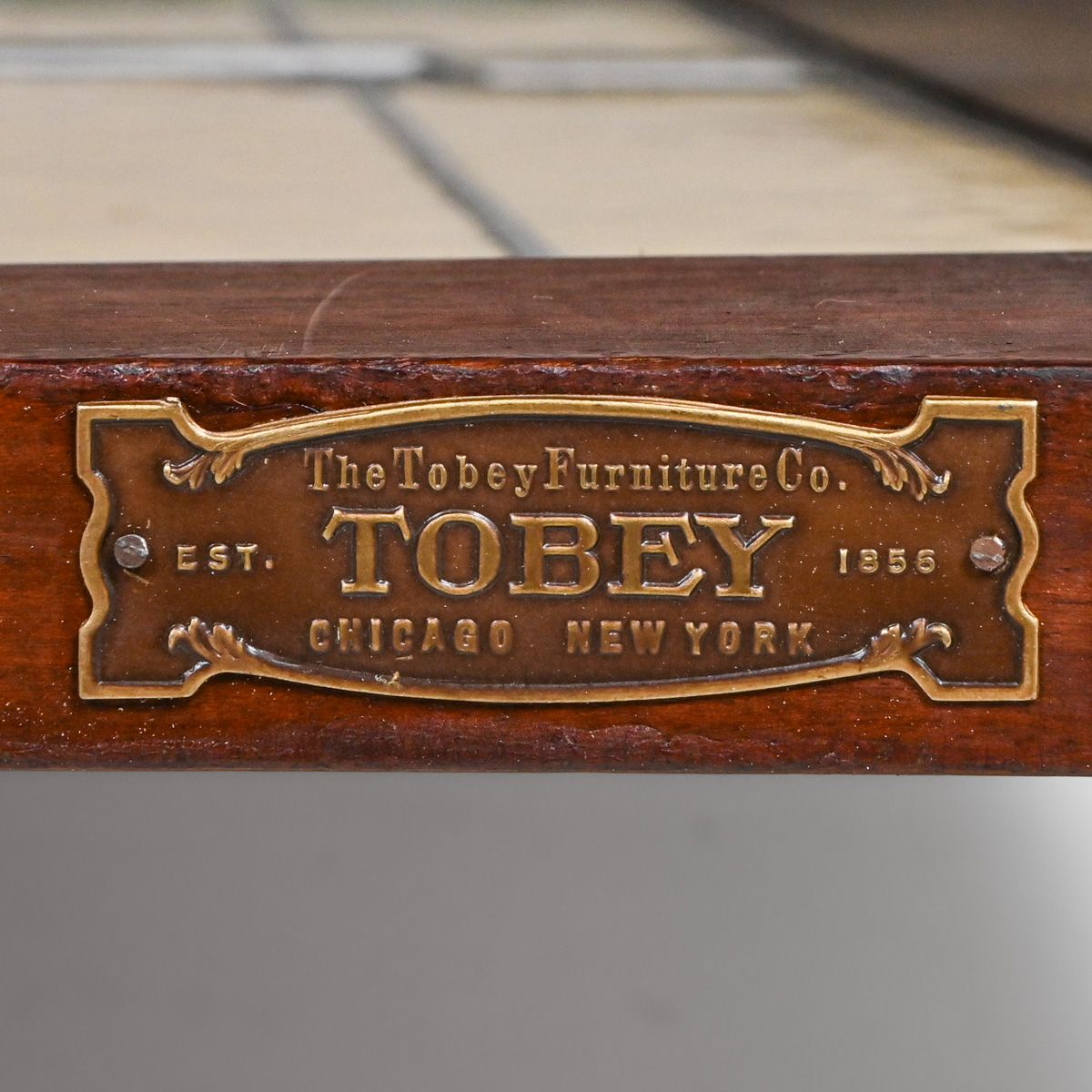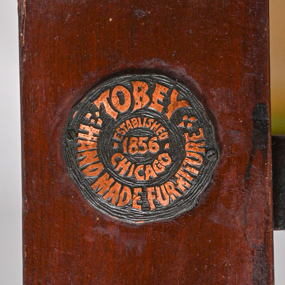Tobey - Chicago Mahogany Art Nouveau Leaded Glass Fireplace Screen c1900s. Signed. Excellent original finish. A few tight lines in original leaded glass, overall excellent condition. 59"w x 36.5"h x 12.25" depth of feet