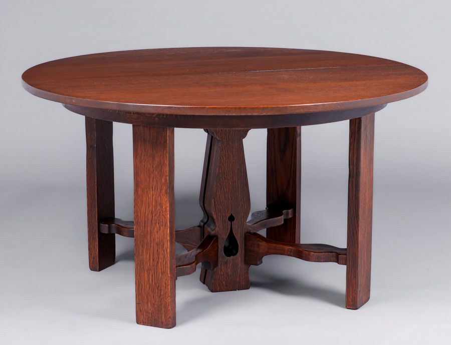 - Tobey Furniture Co 54"w Five-Leg Cutout Dining Table c1902
