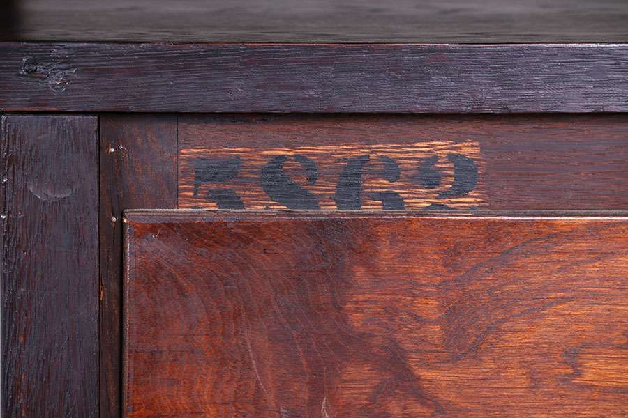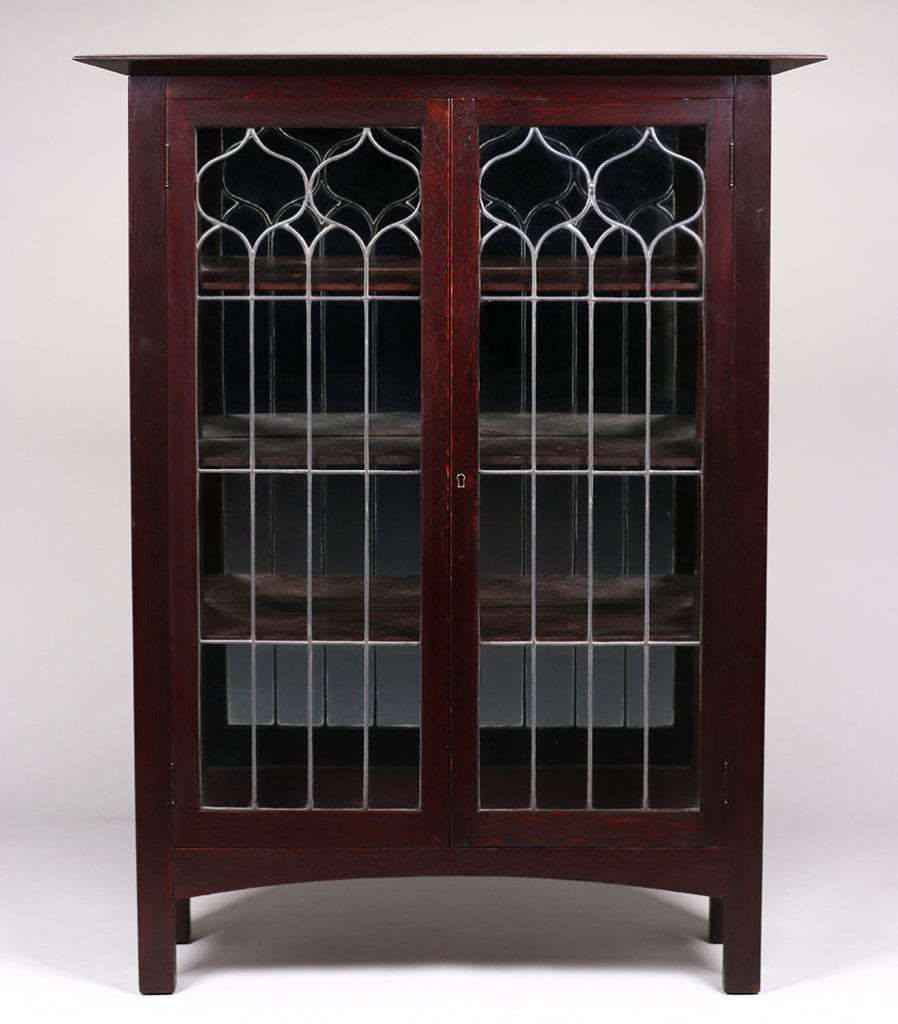 Tobey Furniture Co leaded glass two-door china cabinet #5862. Unsigned. Excellent original finish. 58″h x 44.5″w x 17.75″d SOLD