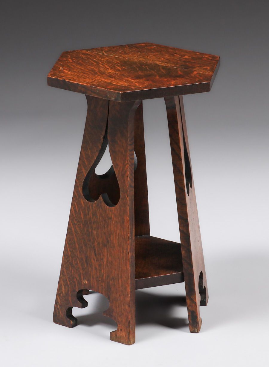 Wolverine Furniture Co - Detroit, MI Cutout Taboret c1905. Unsigned. Original finish. 18"h x 11"d $1200