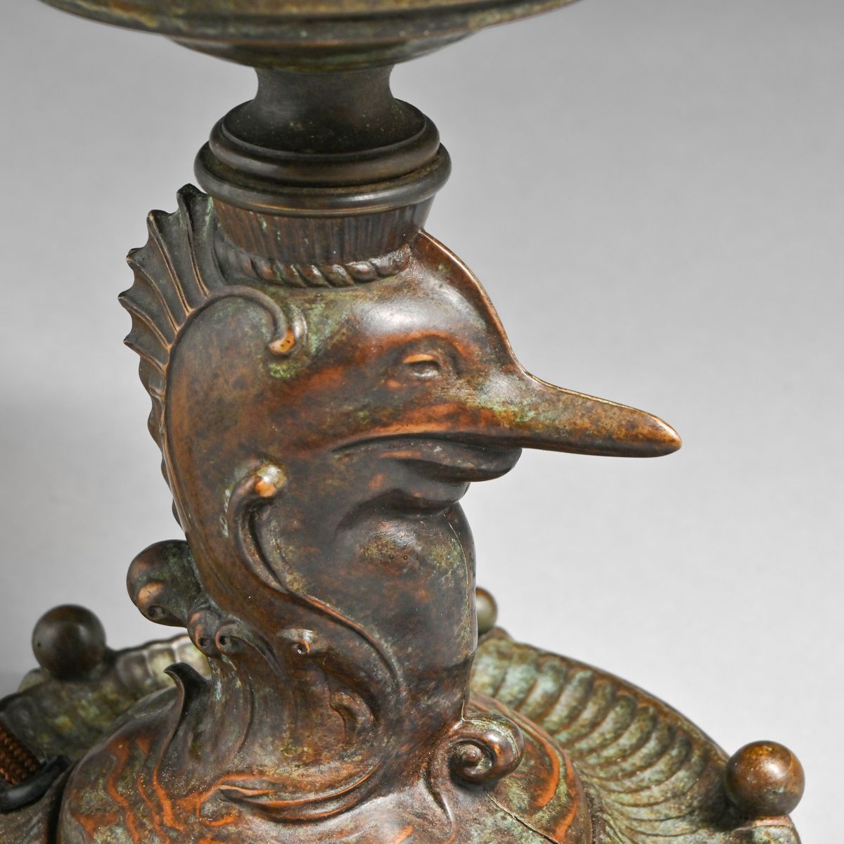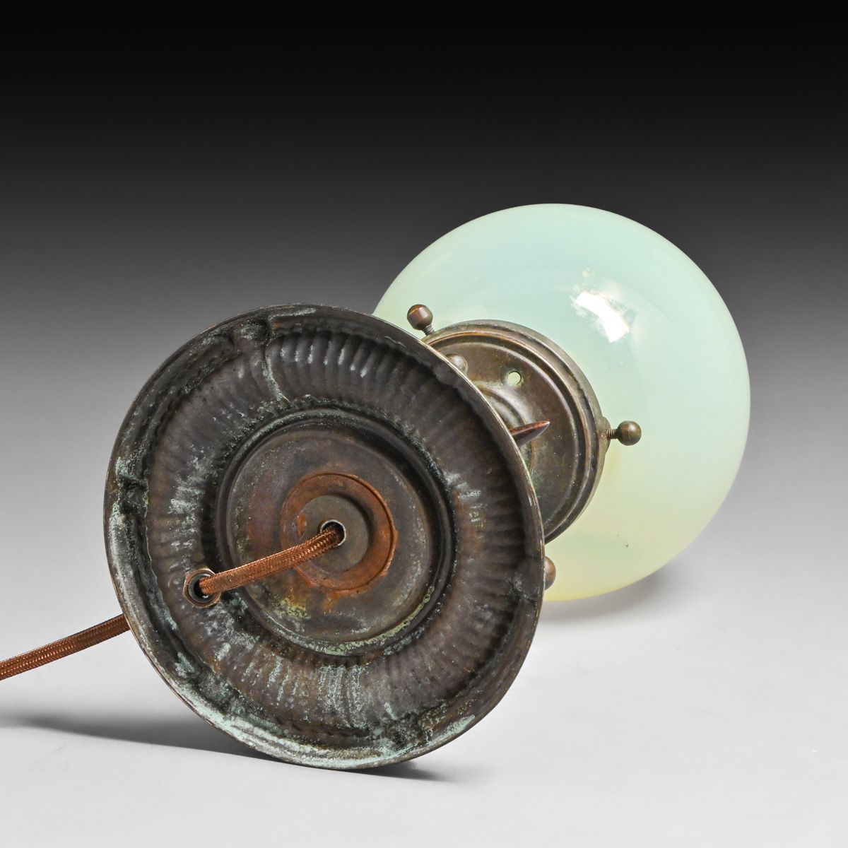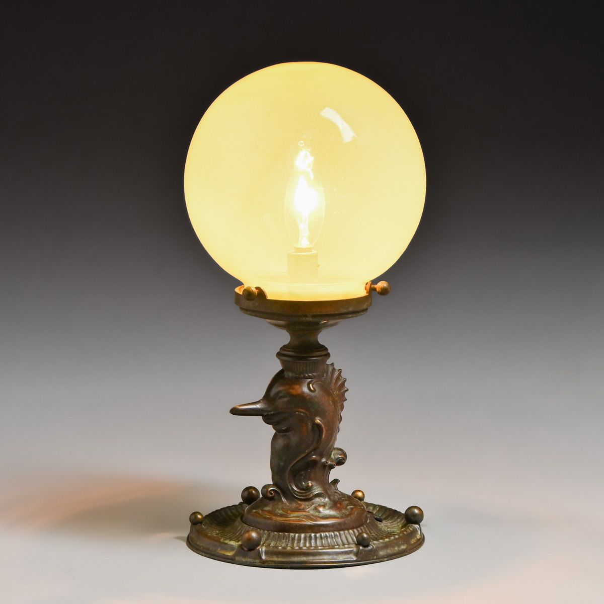 - Arts & Crafts Bronze Swordfish & Opaline Glass Globe Lamp c1920s