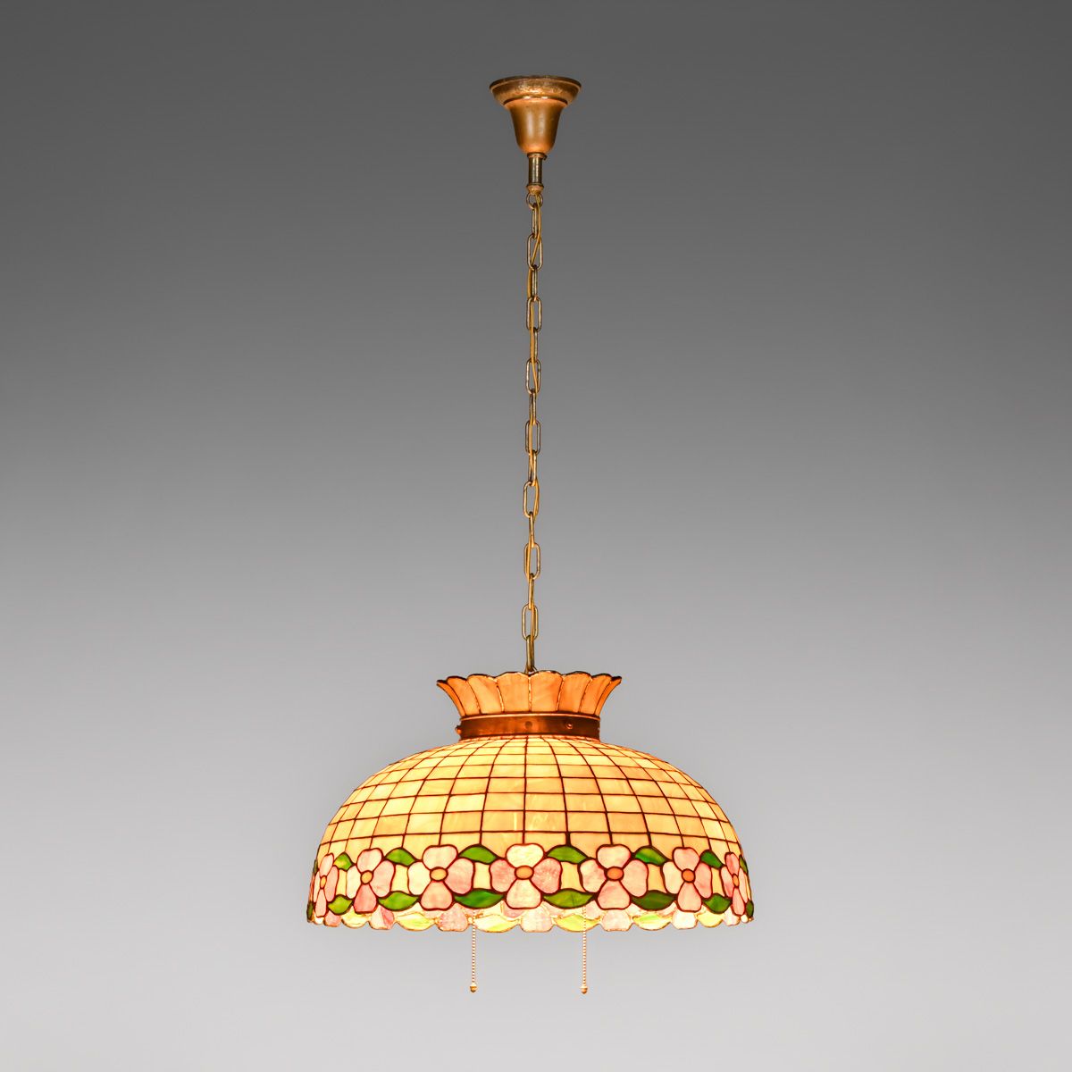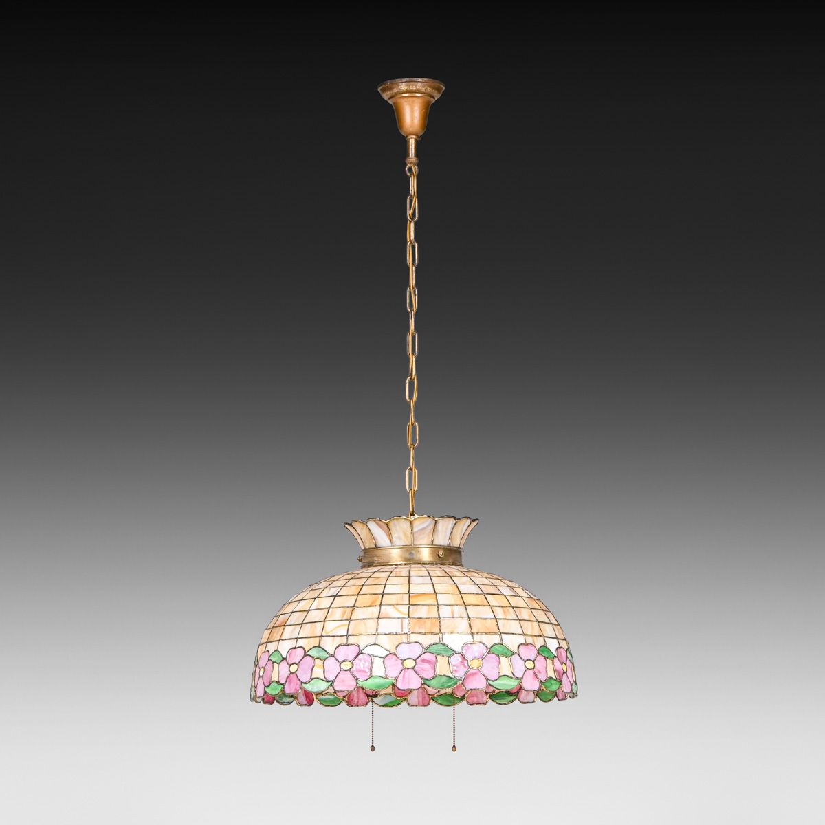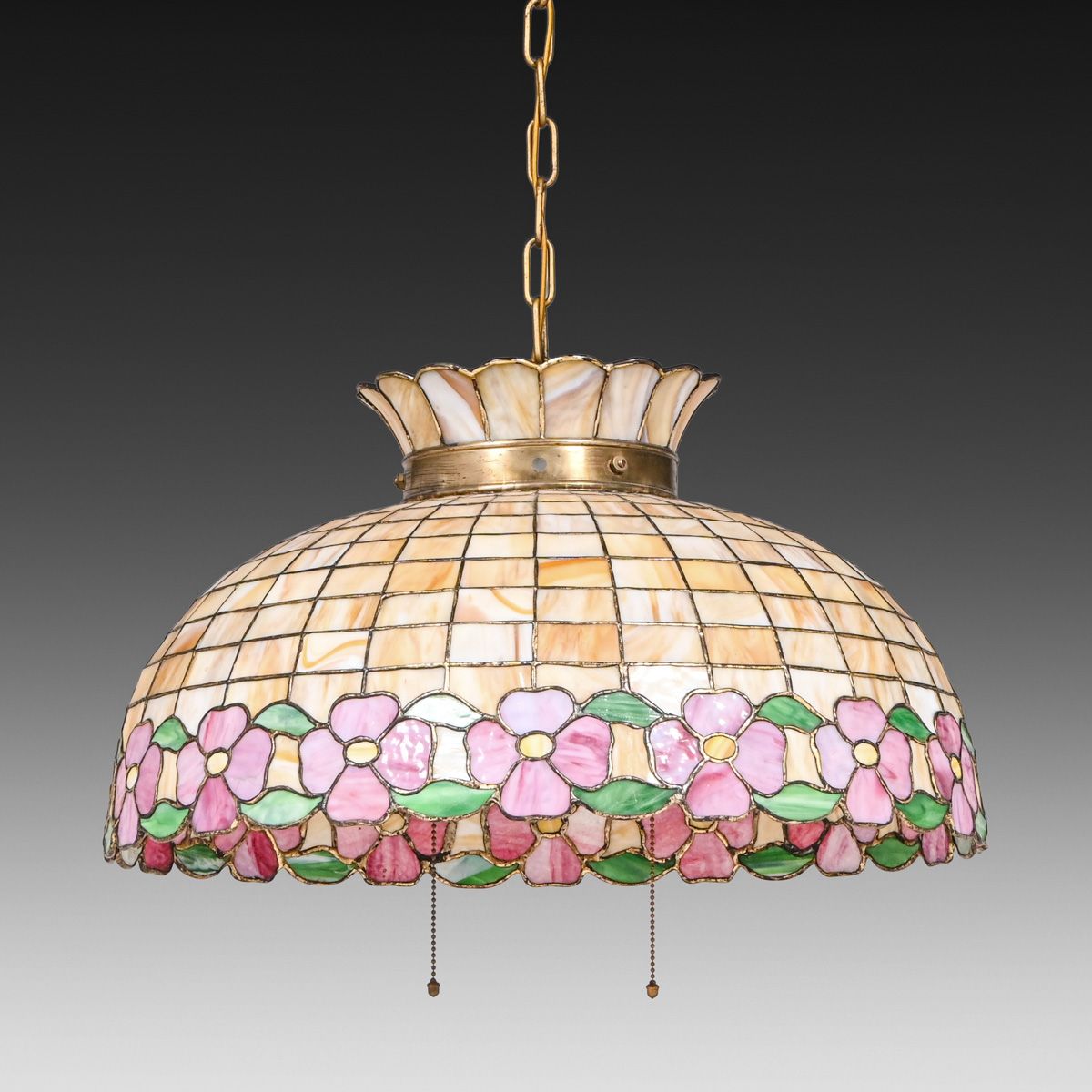 - Arts & Crafts Period Leaded Glass Hanging Chandelier c1910s
