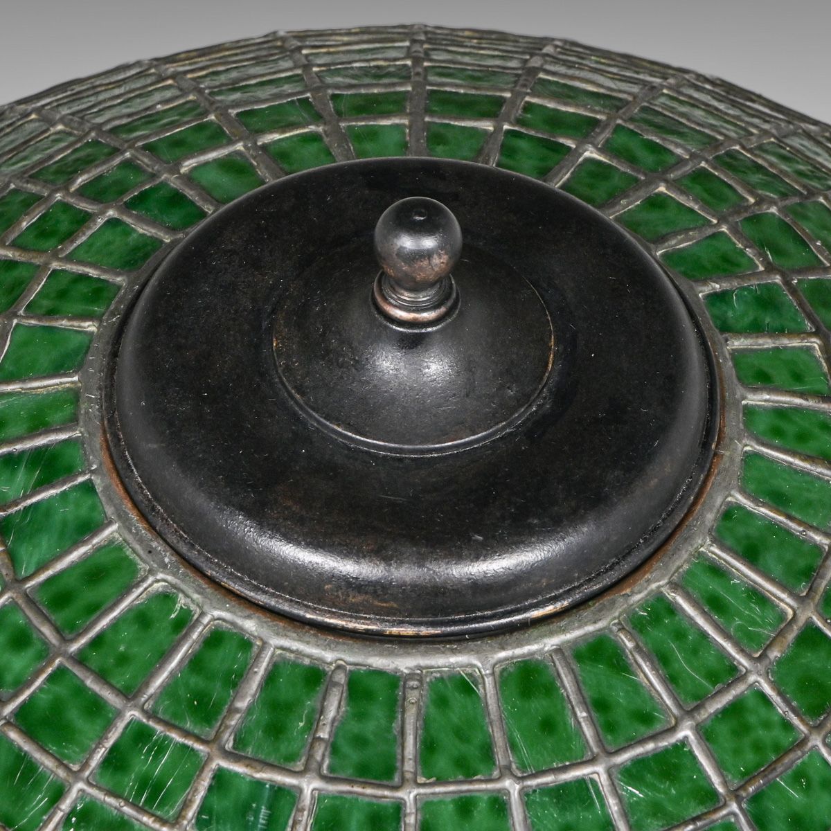 Bigelow & Kennard Green Leaf Leaded Glass Lamp c1910. Signed. Excellent original patina. Original glass in near perfect condition. 20"h x 16"d