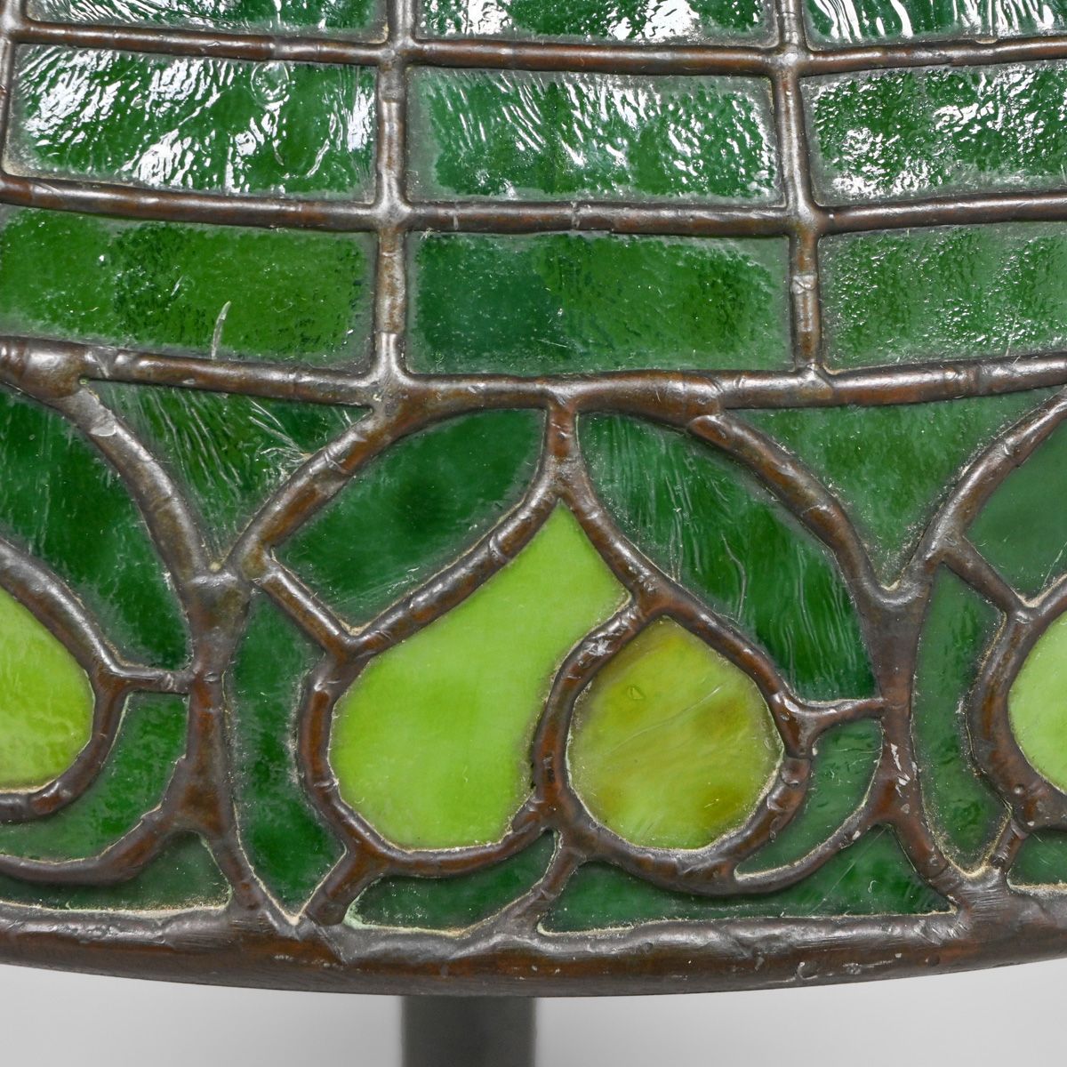 - Bigelow & Kennard Green Leaf Leaded Glass Lamp c1910