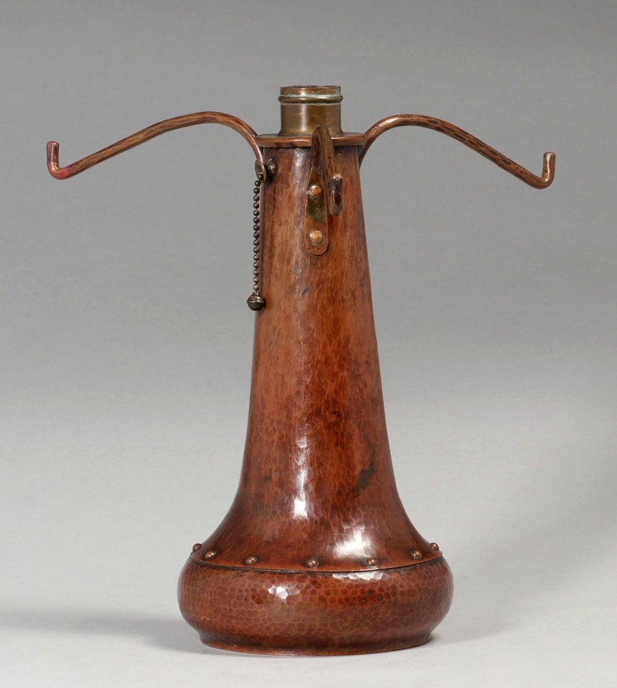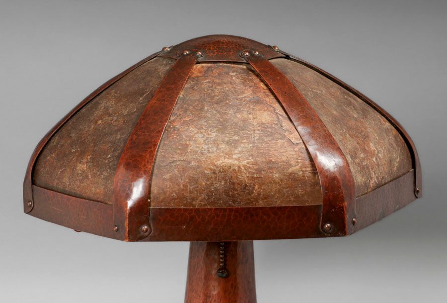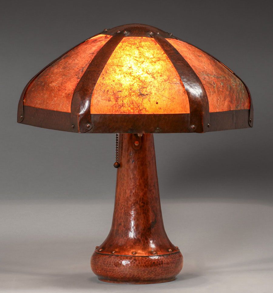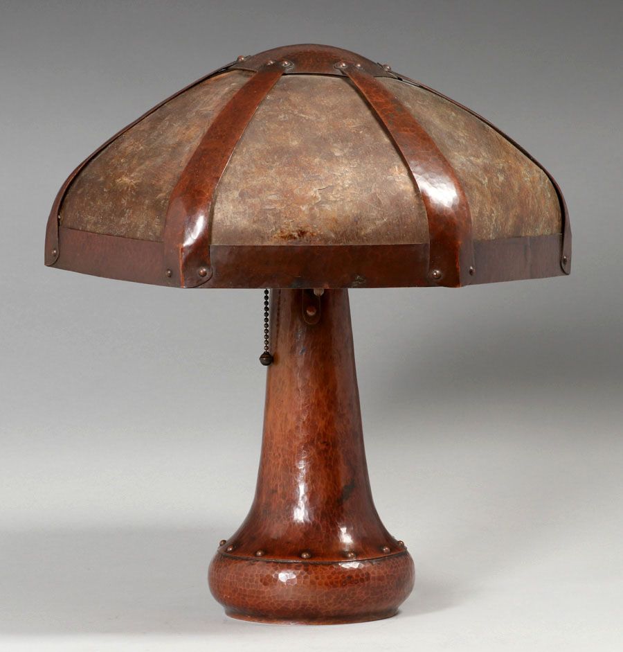 - Extremely Rare B&M Shop Hammered Copper & Mica Rivetbase Lamp c1909-1910